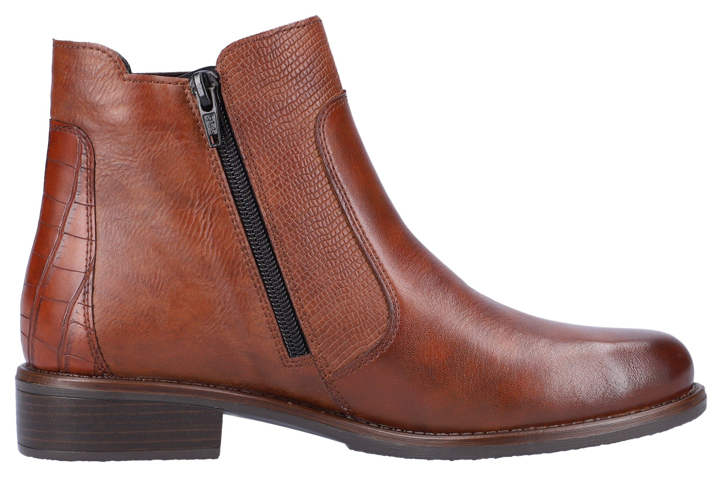 Oh ja, diese Remonte Chelsea-Stiefel sind einfach nur traumhaft! Aus hochwertigem Glattleder gefertigt, sehen sie nicht nur klasse aus, sondern sind auch super bequem. Der typische Elastikeinsatz an den Seiten zusammen mit einem praktischen Reißverschluss macht das An- und Ausziehen zum Kinderspiel. Die leichte Profilsohle gibt dir sicheren Halt, während das gepolsterte Wechselfußbett für ein wunderbares Laufgefühl sorgt. Besonders praktisch: Die Stiefel sind in Komfortweite geschnitten - also perfekt für alle, die etwas mehr Platz für ihre Füße brauchen. Und das Beste: Es gibt sie auch in Übergrößen! Das atmungsaktive Textilfutter sorgt für ein angenehmes Fußklima, während die rutschfeste TR-Laufsohle dich sicher durch den Tag bringt. Die weiche, wärmende Einlage macht diese Boots zum perfekten Begleiter für die kühlere Jahreszeit. Egal ob zum Jeans-Look, zu Kleidern oder zu einer lässigen Hose - diese Chelsea-Stiefel passen einfach zu allem und machen jedes Outfit sofort stylischer. Einfach anziehen und sich wohlfühlen - mehr braucht's nicht!