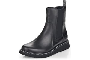 Remonte Damen Chelsea-Stiefel D3970 - Schwarze Leder Boots Mit Reißverschluss