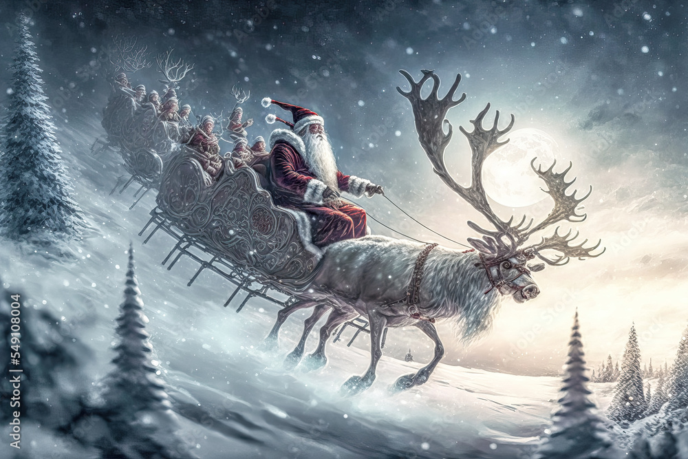Weihnachtsmann Schlitten Rentier Deko - 25x25cm Acryl Tischdekoration Weihnachten