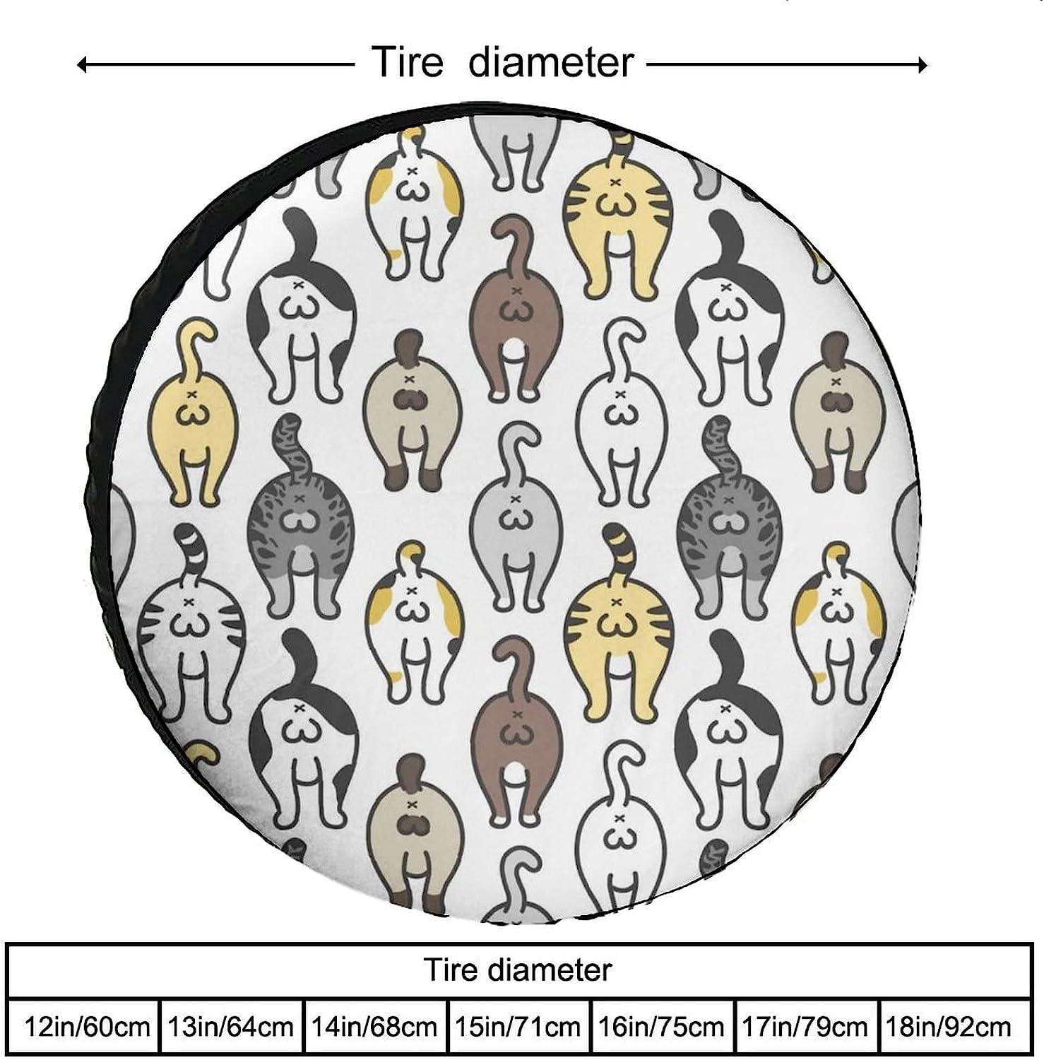 Schütze dein Reserverad mit Style! Diese süße Radabdeckung mit Katzen-in-Bäumen-Motiv ist nicht nur praktisch, sondern sieht auch super aus. Aus wasserdichter Polyesterfaser schützt sie vor Witterung und UV-Strahlen. Für 15 Zoll Reifen (70-75 cm Durchmesser) passt sie auf die meisten Fahrzeuge - ob Wohnmobil, SUV, LKW oder Anhänger. Einfach ohne Werkzeug montieren: Kordelzug festziehen und fertig! Verhindert das Wegwehen und hält sicher. Mach dein Auto individuell und schütze gleichzeitig den Reservereifen - praktisch und hübsch!