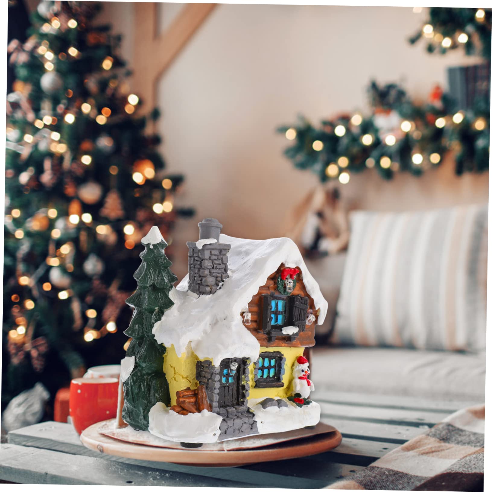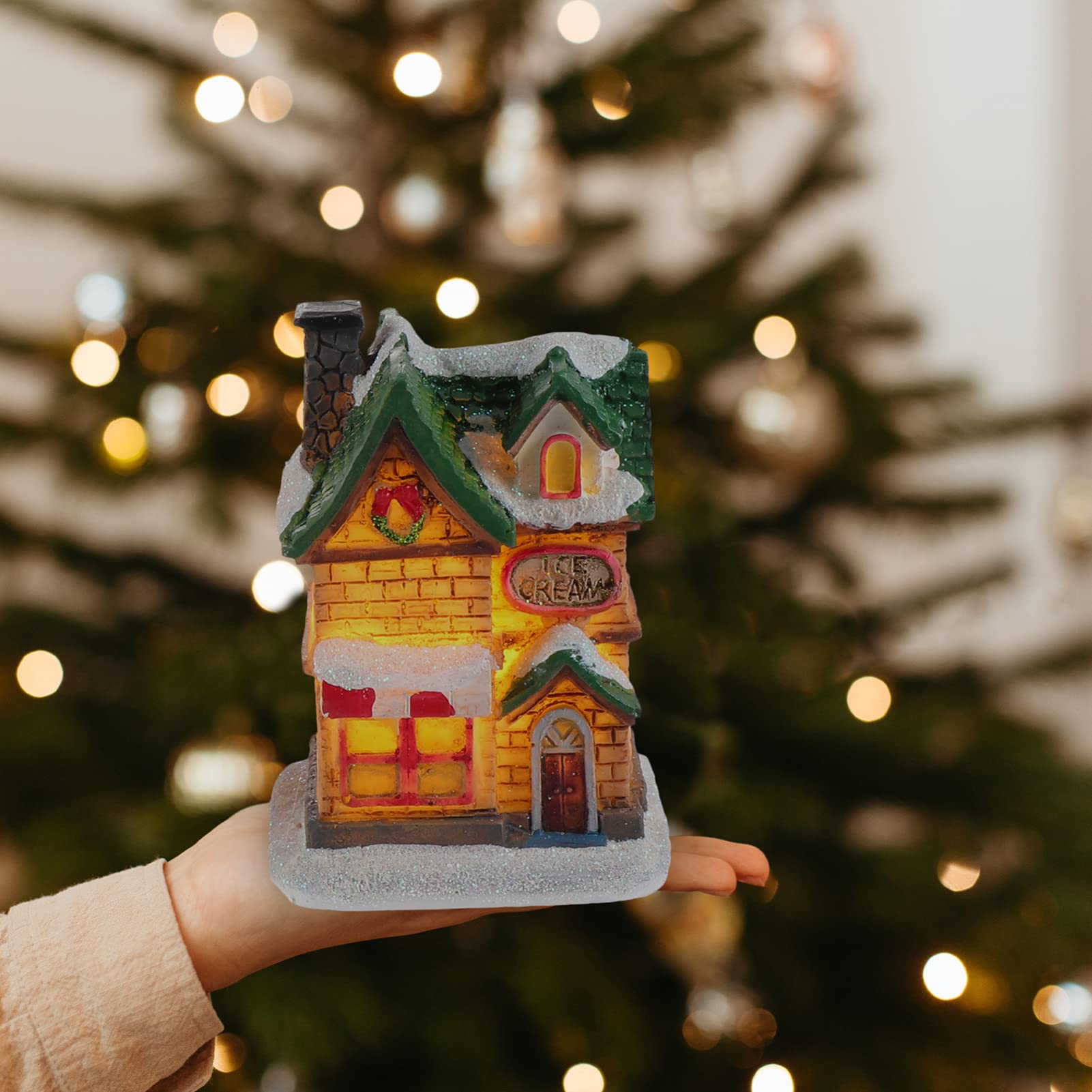 MAGICLULU Mini Resin Häuser Weihnachtsdeko - 4-teiliges Set Winterlandschaft, Bunt, 5,3cm