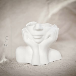 Diese weiße Resin-Kopfvase ist ein echter Hingucker! Mit 21x16x16 cm perfekt für Sukkulenten, kleine Pflanzen oder als Vase für Trockenblumen. Das künstlerische Design verleiht jedem Raum sofort eine besondere Note - ob im Wohnzimmer, Büro oder Schlafzimmer. Aus hochwertigem Harz gefertigt, liegt sie gut in der Hand und fühlt sich wertig an. Super als Geschenk für Pflanzenliebhaber oder um das eigene Zuhause aufzuwerten. Du kannst sie auch einfach als Deko-Objekt ohne Pflanzen nutzen - sieht trotzdem toll aus! Die weiße Farbe passt zu fast jedem Einrichtungsstil. Einfach deine Lieblingspflanze rein, aufstellen und bewundern! So bringst du Kunst und Natur perfekt zusammen. Perfekt auch für Café, Restaurant oder als besonderes Geschenk.