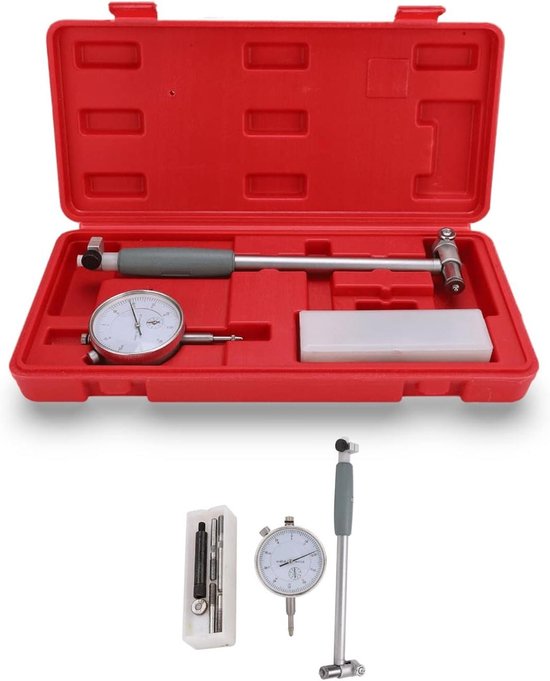 Hey Schrauber! Dieses Bohrungsmess-Set ist genau das Richtige für präzise Arbeiten an Motorzylindern und Industrieteilen. Mit einem Messbereich von 50-160 mm und einer supergenauen Ablesung von 0,01 mm bekommst du immer exakte Ergebnisse. Das selbstzentrierende Design mit Führungsschutzbrücke macht die Handhabung super einfach. Im Lieferumfang sind 5 verschiedene Messstäbe, ein Messgerätekopf und eine praktische Kunststoffbox für die Aufbewahrung. Aus robustem Metall gefertigt, hält das Set auch in anspruchsvoller Werkstattumgebung stand. Perfekt für Kfz-Mechaniker, Maschinenbauer oder alle, die Wert auf genaue Messungen legen. Einfach das richtige Messstab auswählen und loslegen - professionelle Ergebnisse garantiert!
