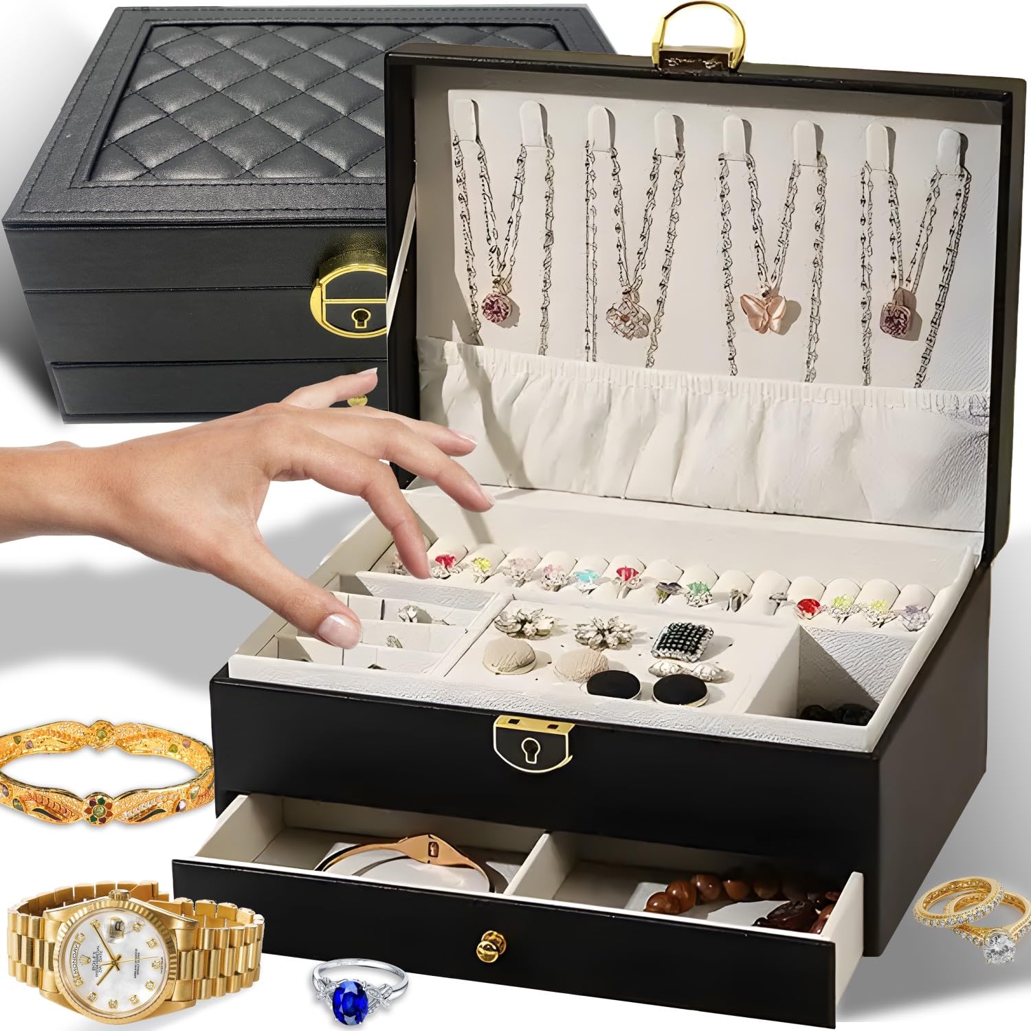 Retoo Schmuckkoffer Aus PU-Leder Mit Spiegel & Schloss – Elegante Aufbewahrung Für Ohrringe, Ketten & Ringe