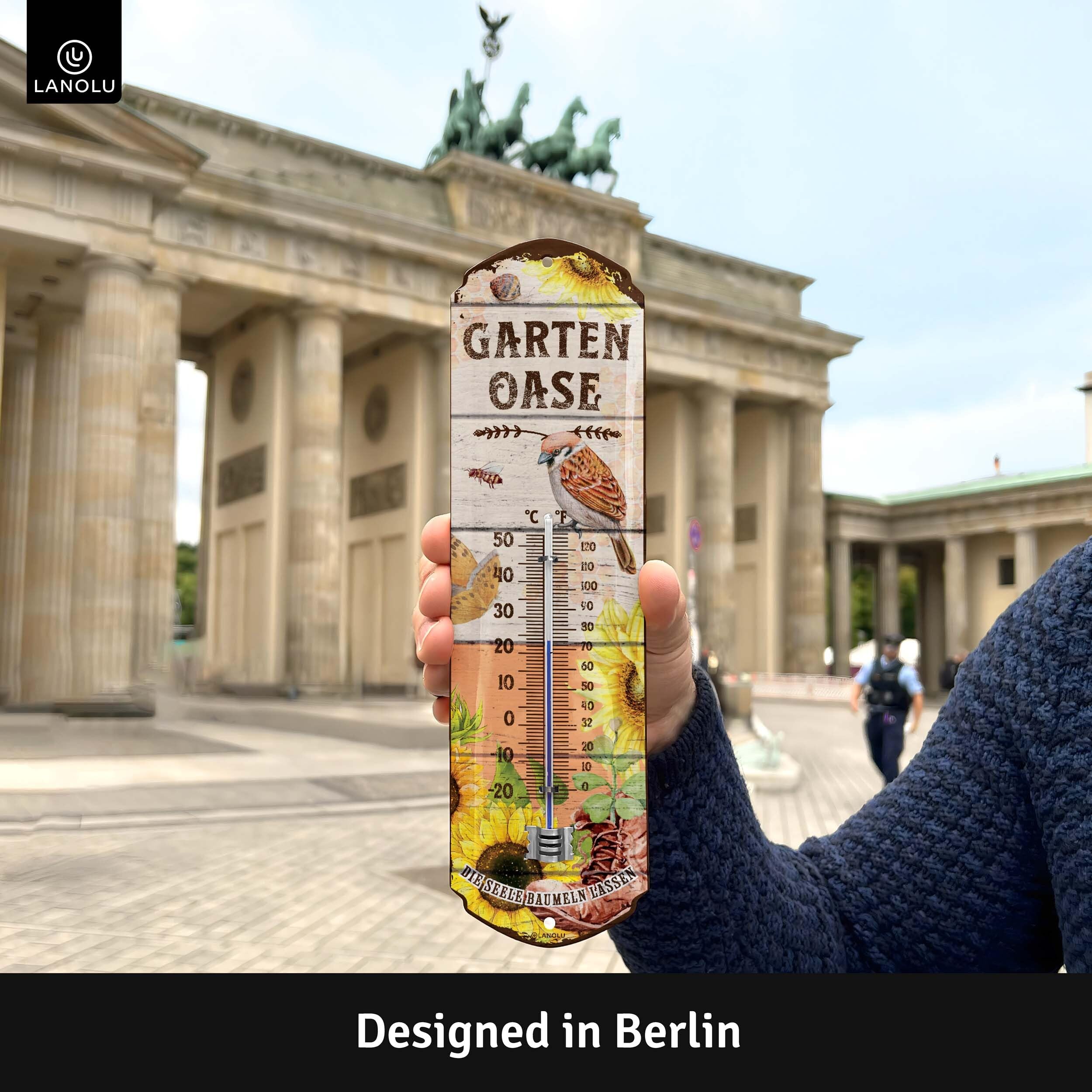 Ein absolutes Muss für jeden Hundebesitzer! Dieses niedliche Blechschild-Thermometer mit der Aufschrift \Gassi Thermometer\ ist nicht nur praktisch, sondern auch ein echter Hingucker. Im Vintage-Design mit witzigem Hundemotiv - perfekt für Garten, Terrasse, Küche oder Wohnzimmer. Maße: 8x28cm - nicht zu groß, nicht zu klein. Aus stabilem Stahlblech mit Klarlack überzogen für Wetterbeständigkeit und besonderen Glanz. Mit 4 vorgebohrten Löchern für einfache Montage. Auch mit Kordel als Hängeschild verwendbar. Designed in Berlin - hohe Qualität garantiert! Perfektes Geschenk für Hundefreunde zu Geburtstag, Weihnachten oder einfach so. Unterstütze mit deinem Kauf ein junges Familienunternehmen. Bring Charme und Nostalgie in dein Zuhause - und weiß immer, ob es warm genug für den nächsten Gassi-Gang ist!