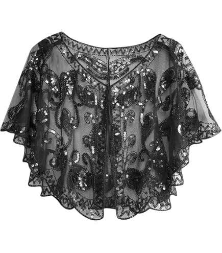 Retro Flapper Schal Mit Perlen & Pailletten - 1920er Jahre Cape Für Abendparty