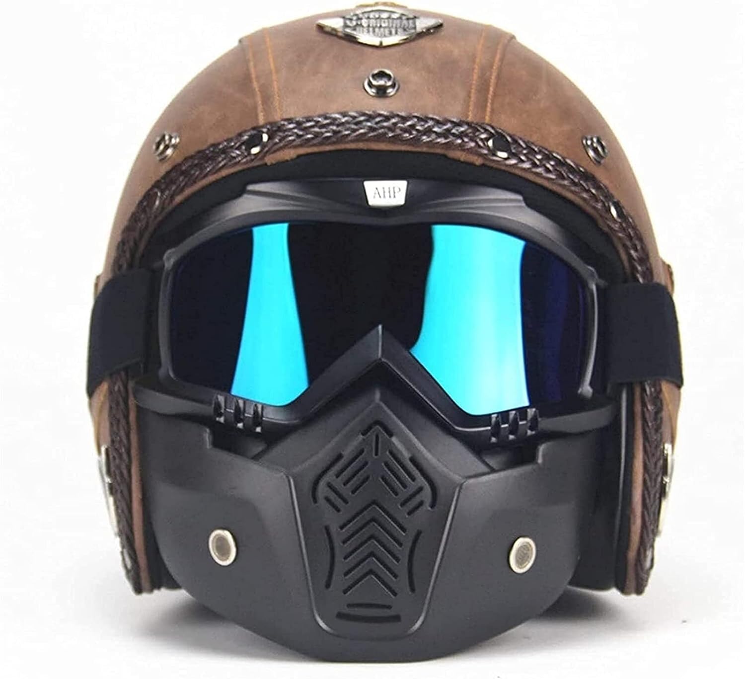 Retro Motorradhelm Leder Vintage - DOT/ECE Zertifiziert Mit Brille Jethelm