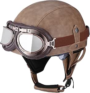 Stylischer Retro-Look meets moderne Sicherheit! Dieser Vintage Motorradhelm im klassischen Jet-Design vereint ikonisches Aussehen mit zeitgemäßen Sicherheitsstandards. Perfekt für Cruiser, Chopper und alle, die den klassischen Motorrad-Charme lieben.\\n\\nSicherheitsfeatures:\\n• DOT/ECE Zertifizierung\\n• ABS-Schale für maximale Festigkeit\\n• EPS-Pufferschicht mit hoher Dichte\\n• Stoß- und durchdringungsfest\\n• Getestete Sicherheitsstandards\\n\\nKomfort & Material:\\n• Material: PU-Leder + ABS-Schale\\n• Herausnehmbares, waschbares Innenfutter\\n• Atmungsaktiv und feuchtigkeitsableitend\\n• Schnellverschluss-Schnalle\\n• Verstellbarer Kinnriemen\\n\\nGrößen:\\n• M (57-58 cm)\\n• L (59-60 cm)\\n• XL (61-62 cm)\\n• XXL (63-64 cm)\\n\\nIm Lieferumfang:\\n• 1x Retro Motorrad-Halbhelm\\n• 1x Schutzbrille\\n• 1x Aufbewahrungstasche\\n\\nDer Helm eignet sich perfekt für:\\n• Motorrad-Cruiser\\n• Vintage-Bikes\\n• Mopeds und Roller\\n• Als stylisches Accessoire\\n\\nHol dir den zeitlosen Look der Motorrad-Legenden - aber mit der Sicherheit von heute. Fahr stylisch und sicher in die Sonne!