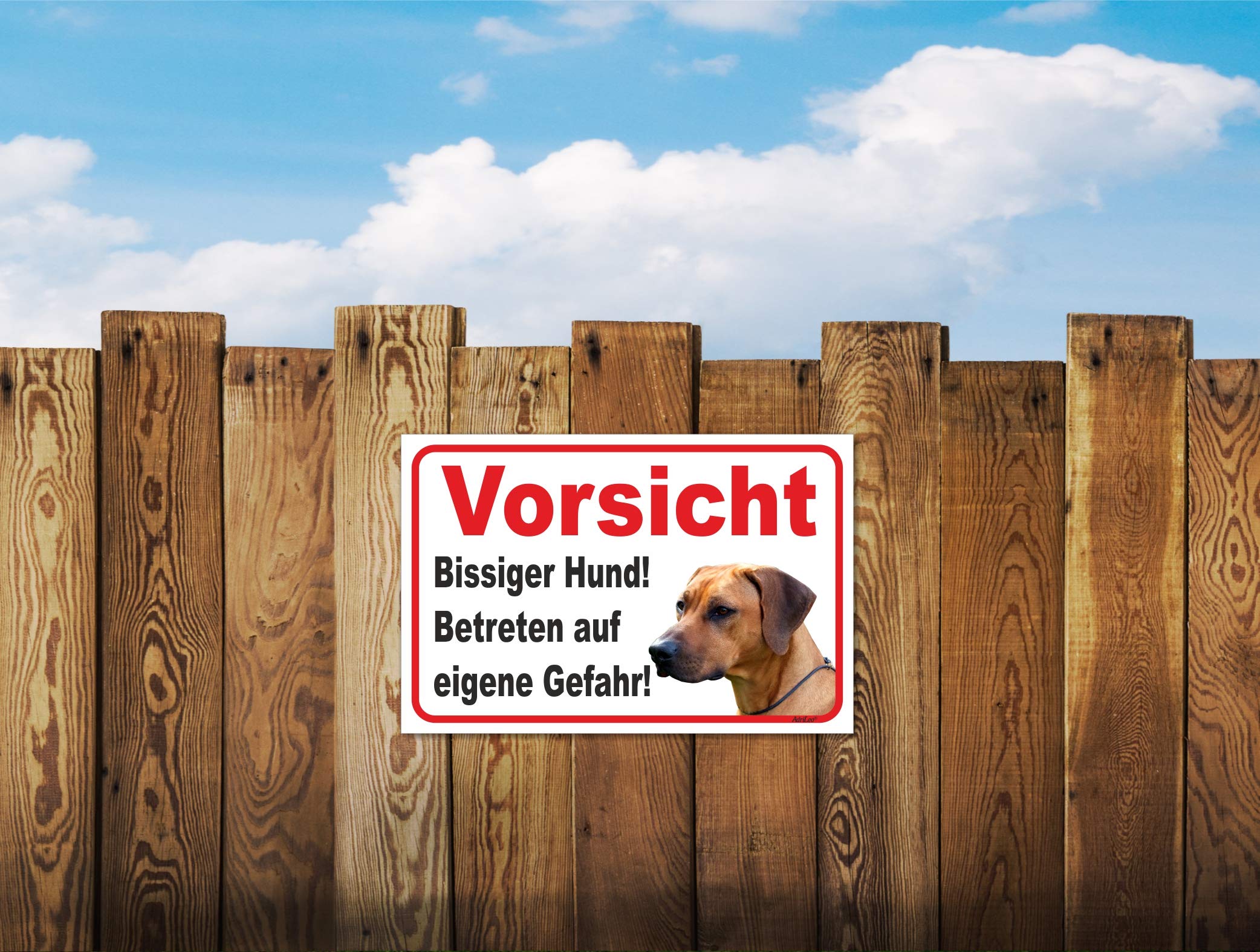 Achtung, Rhodesian Ridgeback im Haus! Dieses Metall-Warnschild ist perfekt für alle Ridgeback-Besitzer. In A4-Größe (30,5x20cm) aus 0,5mm starkem Aluminium. Die Ecken sind abgerundet, damit sich niemand verletzt. Auf Wunsch stanzen wir dir kostenlos Befestigungslöcher mit 5mm Durchmesser rein - einfach nach dem Kauf Bescheid sagen. Robust, wetterfest und gut sichtbar. Zeig deine Liebe zur Rasse und warne gleichzeitig Besucher. Ein muss für jeden stolzen Ridgeback-Halter!