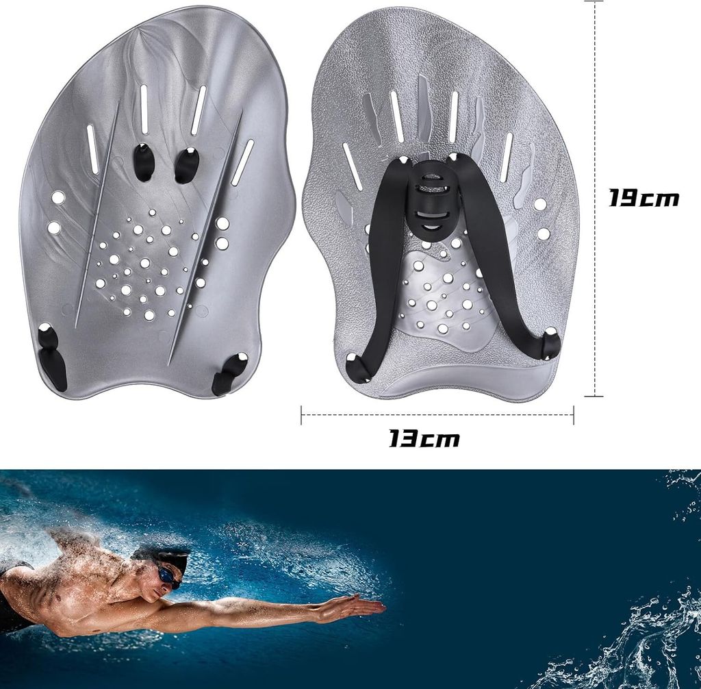 Perfekt für dein Schwimmtraining! Diese Hand-Paddles helfen dir, deine Technik zu verbessern und die Oberkörperkraft zu steigern. Mit den verstellbaren Riemen sitzen sie sicher und bequem an den Händen. Das ergonomische Design mit Entwässerungslöchern reduziert den Wasserwiderstand und trainiert gezielt Arme, Schultern und Rücken. Aus robustem PC-Material gefertigt, sind sie leicht und langlebig. Egal ob Anfänger oder Profi - für Freistil, Brustschwimmen oder Schmetterling sind diese Paddle ideal. Einfach nach dem Training mit Süßwasser abspülen und trocknen lassen. Dein Weg zu besserer Schwimmtechnik!