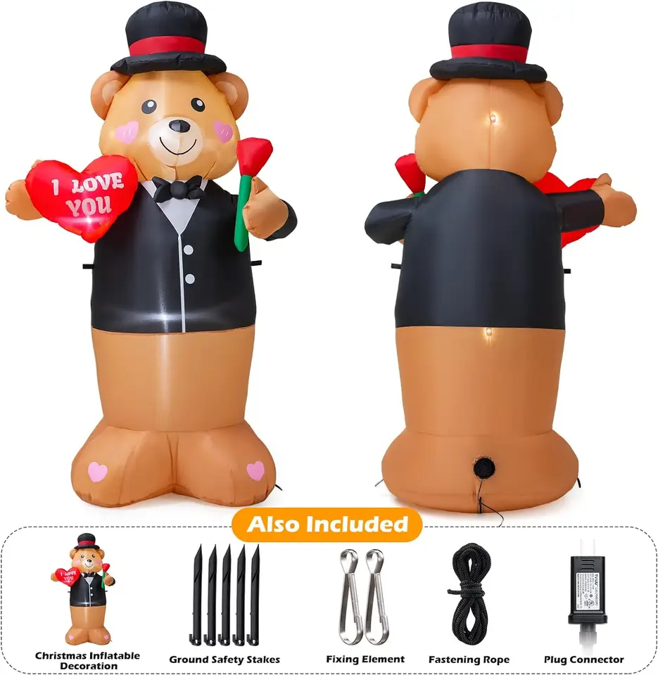 Riesiger Aufblasbarer Valentinstag-Teddybär 185cm Mit LED-Beleuchtung - Wasserdichte Außendekoration