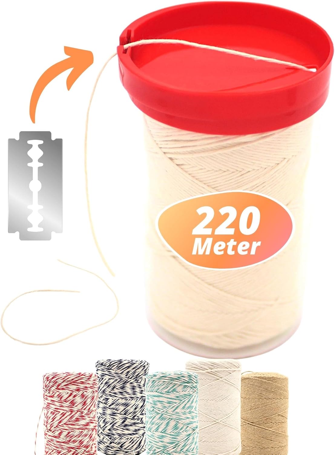 Kennst du das? Beim Rouladen-Binden reißt dir das blöde Garn ständig? Mit diesem hochwertigen Baumwollgarn gehört das Ärgernis der Vergangenheit an! 200 Meter starke, lebensmittelechte Baumwolle - perfekt für die Küche und zum Basteln.\\n\\nWarum dieses Garn so besonders ist:\\n• 200 Meter Lauflänge - reicht für viele Rouladen\\n• Lebensmittelecht und ungebleicht\\n• Hitzebeständig - perfekt zum Kochen und Backen\\n• Natürliche Baumwollfasern\\n• In Weiß und Rot erhältlich\\n\\nEinsatzgebiete in der Küche:\\n• Rouladen binden\\n• Braten verschnüren\\n• Würste herstellen\\n• Geflügel vorbereiten\\n\\nAber auch super für:\\n• Makramee-Projekte\\n• Traumfänger basteln\\n• Geschenke verpacken\\n• DIY-Kreationen\\n\\nVorteile auf einen Blick:\\n• Reißfest und robust\\n• Einfach zu handhaben\\n• Umweltfreundlich\\n• Vielseitig einsetzbar\\n\\nTipp: Das rote Garn sieht nicht nur hübsch aus, du siehst auch sofort, wenn du es später entfernen musst! Perfekt für perfekte Rouladen und saftige Braten.