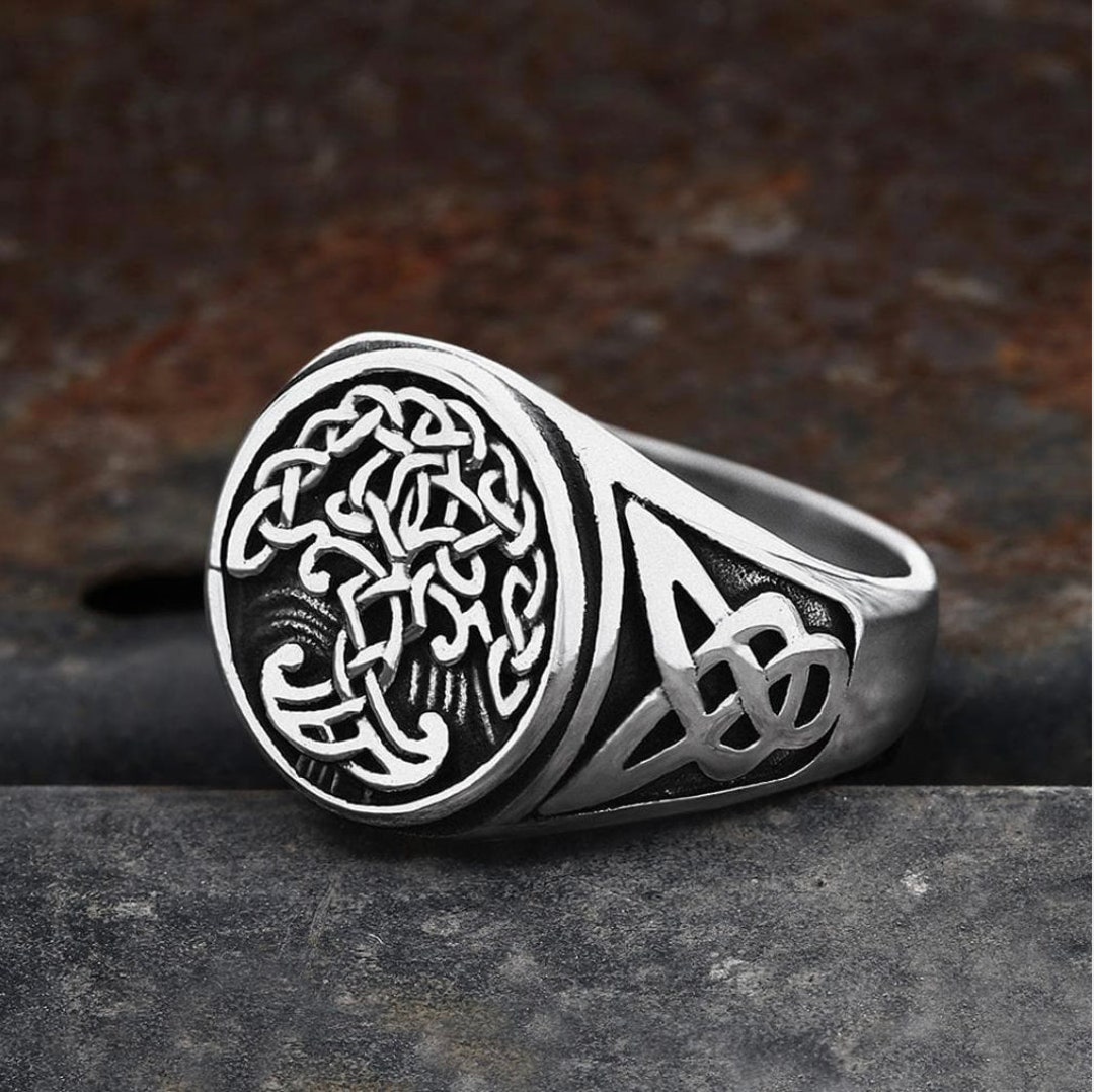 Amaxer Baum Des Lebens Ring Edelstahl - Wikinger Lebensbaum Hohlring Für Damen & Herren