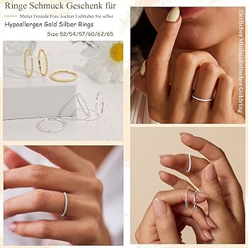 Dieses Ring-Set ist einfach traumhaft! Drei wunderschöne Ringe in Gold und Silber, die du einzeln oder gestapelt tragen kannst - total vielseitig! Hergestellt aus hochwertigem Messing mit 18k Vergoldung und funkelnden Zirkonia-Steinchen. Hypoallergen, nickel- und bleifrei - perfekt für empfindliche Haut. Und wasserdicht sind sie auch noch - kannst sie also bedenkenlos den ganzen Tag tragen. Die Ringe gibt's in den Größen 52-65, passend für die meisten Finger. Kommen in einer edlen Geschenkbox - ideal zum Verschenken an Freundin, Mutter oder einfach an dich selbst! Ob zum Geburtstag, Valentinstag oder einfach so - diese Ringe machen immer eine gute Figur und glänzen wunderschön.