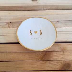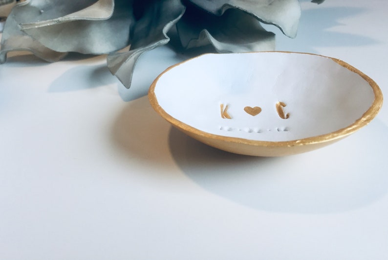 Das perfekte Geschenk für Verlobte! Diese wunderschöne Ringablage aus Keramik wird mit euren Namen und dem besonderen Datum personalisiert. 10 cm Durchmesser - genau die richtige Größe für die Hochzeitszeremonie. Sieht elegant auf dem Schminktisch aus und ist ein toller Blickfang. Perfekt für den Ringtausch bei der Trauung oder als Aufbewahrung für den Eheringe. Auch super für Jahrestage, Valentinstag oder als Geschenk für Brautpaare. Handgefertigt und in schicker Verpackung. Ein persönliches Stück das eure Liebe für immer symbolisiert. Einfach Namen und Datum angeben und ihr erhaltet ein Unikat das euch immer an diesen besonderen Tag erinnert!