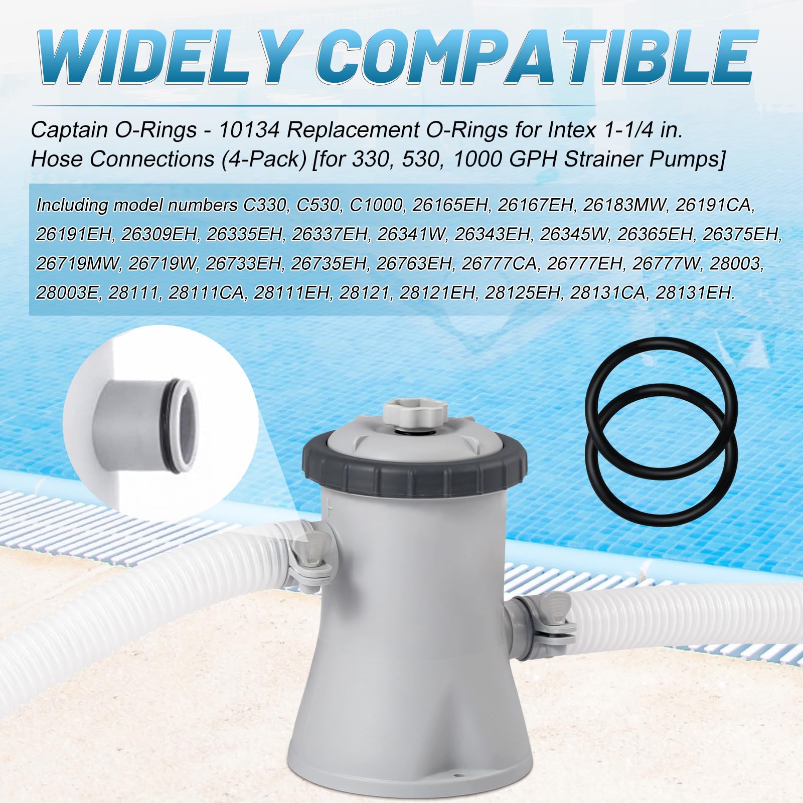 Undichte Poolpumpe? Diese 4 O-Ringe von Intex sind die Lösung! Perfekt für 1-1/4 Zoll Schlauchanschlüsse an Pumpen mit 330, 530 und 1000 GPH. Passend für Modelle wie C330, C530, C1000 und viele mehr. Aus hochwertigem, flexiblem Gummi - super langlebig und verschleißfest! Verhindert lästige Undichtigkeiten an Kolbenventilen und Filteranschlüssen. Schützt deine Poolausrüstung vor Abnutzung. Einfach auszutauschen - auch für Laien machbar! Profi-Tipp: Regelmäßiger Austausch verlängert die Lebensdauer deiner Poolpumpe. Hol dir jetzt das 4er-Set - und mach Schluss mit tropfenden Verbindungen! Dein Pool wird es dir danken - und dein Geldbeutel auch!