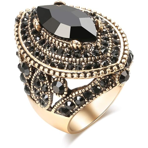 Mikovivi Statement Ringe Set - 3-teilig In Schwarz-Gold Mit Vintage-Design