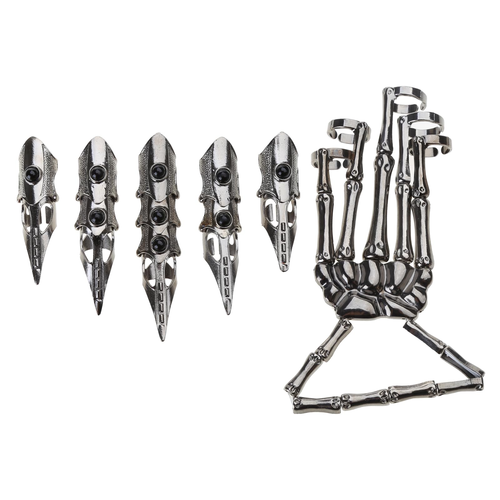 Skelett Handarmband Mit Ringen - Gothic Schmuck Set Für Halloween & Cosplay