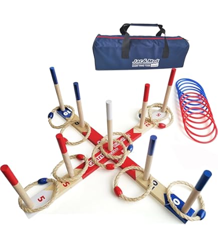 Mega Spaß für die ganze Familie! Dieses klassische Ringwurfspiel aus Kiefernholz ist perfekt für Garten, Strand oder Park. Einfach die Stäbe aufstellen und versuchen, die Ringe darüber zu werfen. Super für Kinder ab 3 Jahren - fördert die Hand-Augen-Koordination und macht dabei riesigen Spaß! Das Holz ist glatt geschliffen, splitterfrei und ungiftig - absolut sicher für kleine Hände. Perfekt für Geburtstagsfeiern, Gartenpartys oder gemütliche Familienabende. Die bunten Ringe sehen nicht nur gut aus, sie liegen auch super in der Hand. Ein zeitloser Klassiker, der Generationen begeistert! Ob zu zweit oder in der Gruppe - hier ist Action garantiert. Einfach aufbauen und losspielen - der perfekte Zeitvertreib für sonnige Tage!
