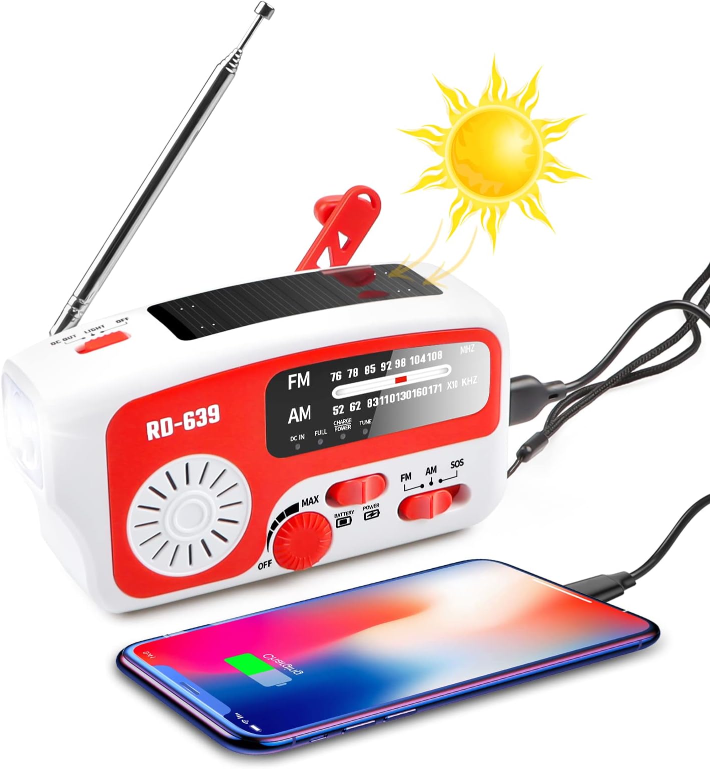 Risegun Solar Kurbelradio - Notfall Radio Mit LED Taschenlampe, USB Ladung & SOS Alarm Für Outdoor