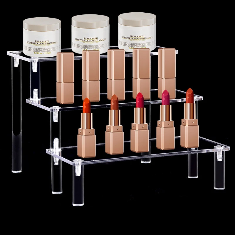Platzprobleme auf deinem Schminktisch oder in der Vitrine? Dieser 3-stufige Acryl-Riser schafft Ordnung und sieht dabei noch mega stylisch aus! \\n\\nIn weniger als einer Minute ist der Ständer zusammengebaut - einfach die Schutzfolie abziehen, die Füße anbringen und fertig. Kein Werkzeug nötig, kein Stress! \\n\\nDie 3mm dicken Acryl-Platten sind super stabil und halten auch schwerere Sachen problemlos aus. Deine Nagellacksammlung, Parfüms oder Deko-Figuren werden endlich ordentlich präsentiert. \\n\\nDurch die transparente Optik lenkt nichts von deinen Sachen ab - alles wirkt sofort hochwertiger und besser organisiert. \\n\\nOb im Badezimmer, Wohnzimmer oder im Retail-Bereich - dieser Ständer ist einfach überall einsetzbar. Sogar für Cupcakes oder Desserts bei der nächsten Party ist er perfekt! \\n\\nEndlich Schluss mit dem Chaos - mit diesem cleveren Organizer findest du alles sofort und deine Lieblingsteile kommen richtig zur Geltung. Einfach genial!