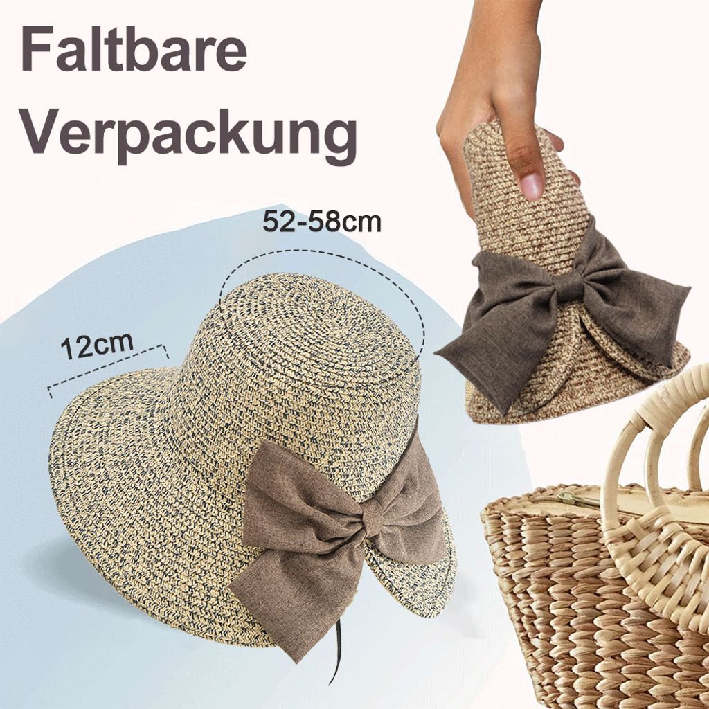 Ritte Strohhut Damen - Falbarer Sonnenhut Mit 13cm Krempe UV-Schutz