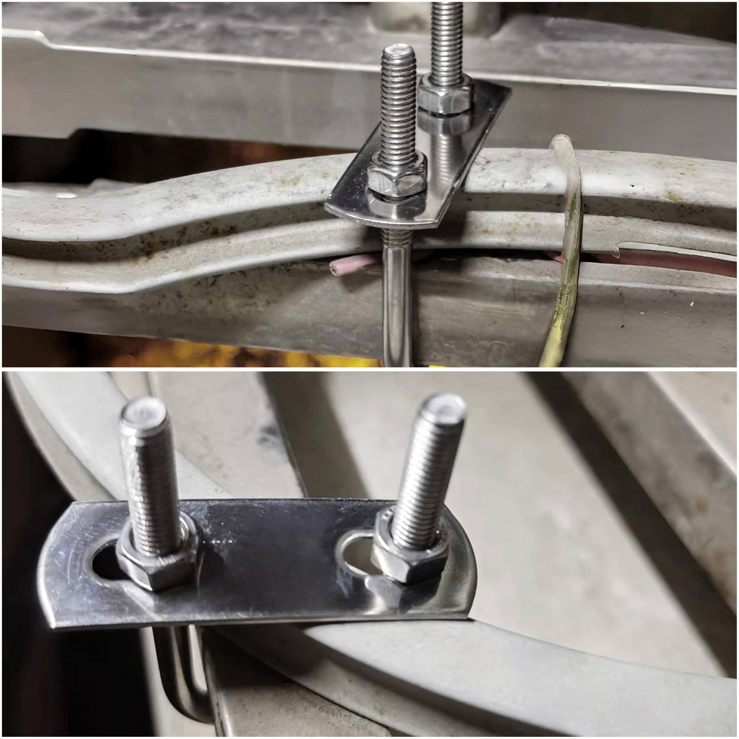 Robuste U-Bolzen für alle möglichen Befestigungsaufgaben! Dieses Set von RobLuX enthält 4 massive Bügelschrauben aus Edelstahl 304 - rostfrei, korrosionsbeständig und extrem langlebig. Mit M8-Gewinde (8mm Durchmesser), 60mm innerer Breite und 100mm Gesamtlänge. Perfekt geeignet für die Befestigung von Rohren, Halterungen oder anderen Bauteilen in Auto, Schiff oder Industrie. Das U-förmige Design schont die Oberfläche der befestigten Teile und hinterlässt keine Druckstellen. Mitgeliefert werden passende Muttern und Unterlegscheiben für sofortigen Einsatz. Einfache Montage mit normalem Maulschlüssel - keine Spezialwerkzeuge nötig. Die abgerundeten Innenkanten verhindern Beschädigungen an empfindlichen Oberflächen. Ideal für temporäre Konstruktionen, Rohrleitungsarbeiten oder die Befestigung von Zubehör im Automotive-Bereich. Auch perfekt für Regale, Brückenkabel oder im Tunnelbau. Die silbergraue Edelstahl-Oberfläche ist nicht nur funktional, sondern sieht auch noch professionell aus. Ein echter Allrounder für Handwerker, Heimwerker und Profis. Einfach bestellen und sofort loslegen mit deinem nächsten Projekt!