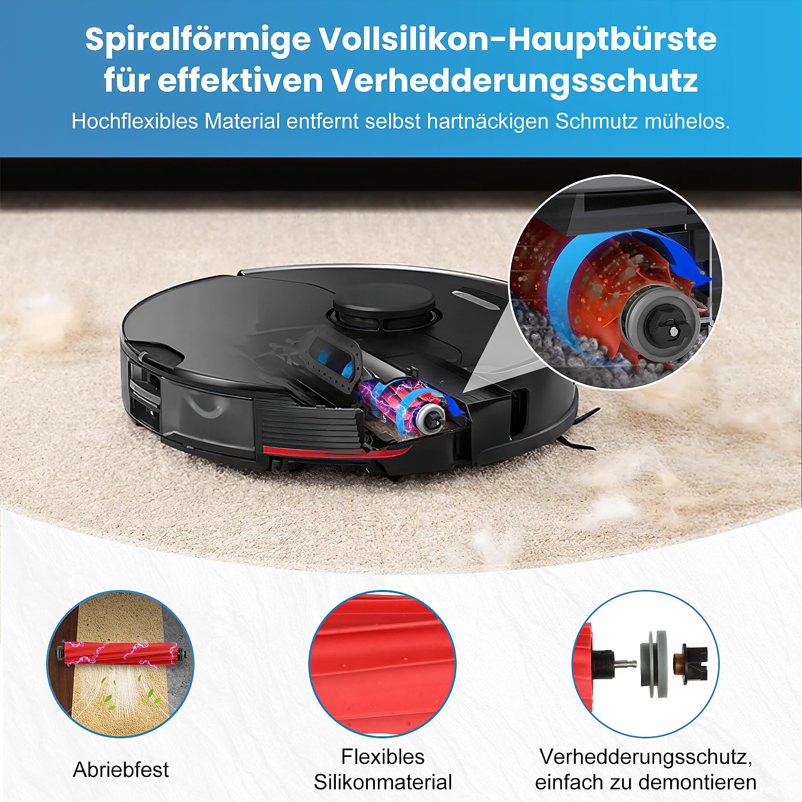 Im Set findest du: 1 Gummihauptbürste, 4 HEPA-Filter, 4 Seitenbürsten und 4 Wischtücher plus ein Reinigungswerkzeug. So kannst du alle verschlissenen Teile einfach austauschen und dein Staubsaugerroboter arbeitet wieder wie neu.