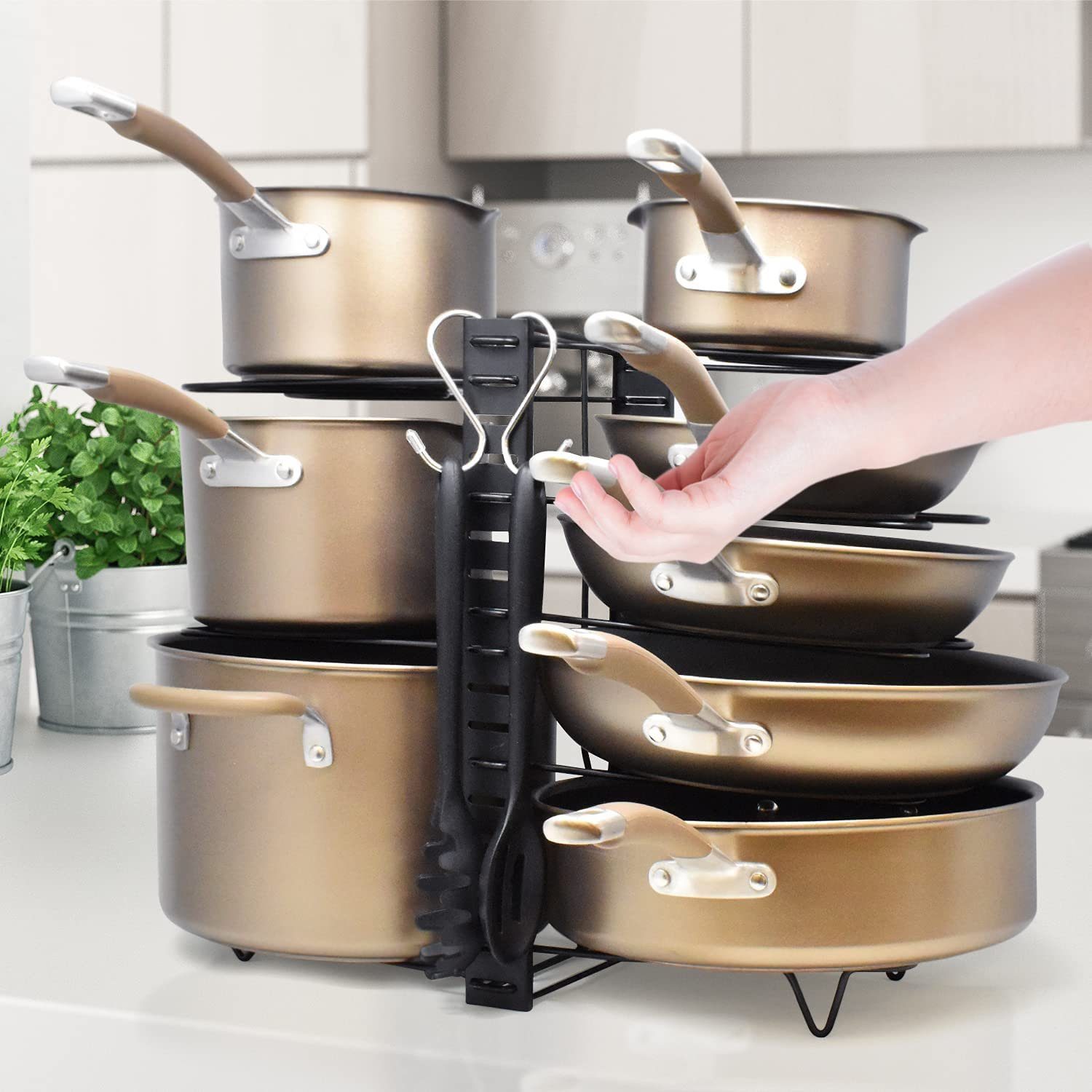 Endlich Ordnung in der Küche! Dieser coole Topfdeckelhalter von FUNOMOCYA hält nicht nur deine Deckel fest, sondern bietet auch Platz für Essstäbchen und andere Küchenutensilien. Super praktisch und stylisch zugleich - einfach auf die Arbeitsplatte stellen und schon sieht alles viel aufgeräumter aus. Das robuste Design hält auch bei täglicher Nutzung problemlos stand. Perfekt für alle, die ihre Küche organisiert halten wollen, ohne ständig suchen zu müssen. Einfach hinlegen, Deckel und Besteck rein - fertig ist die Ordnung! Ideal auch als Geschenk für Einzugspartys oder Küchenliebhaber. Mach deine Küche zur Wohlfühloase mit diesem cleveren Helfer!