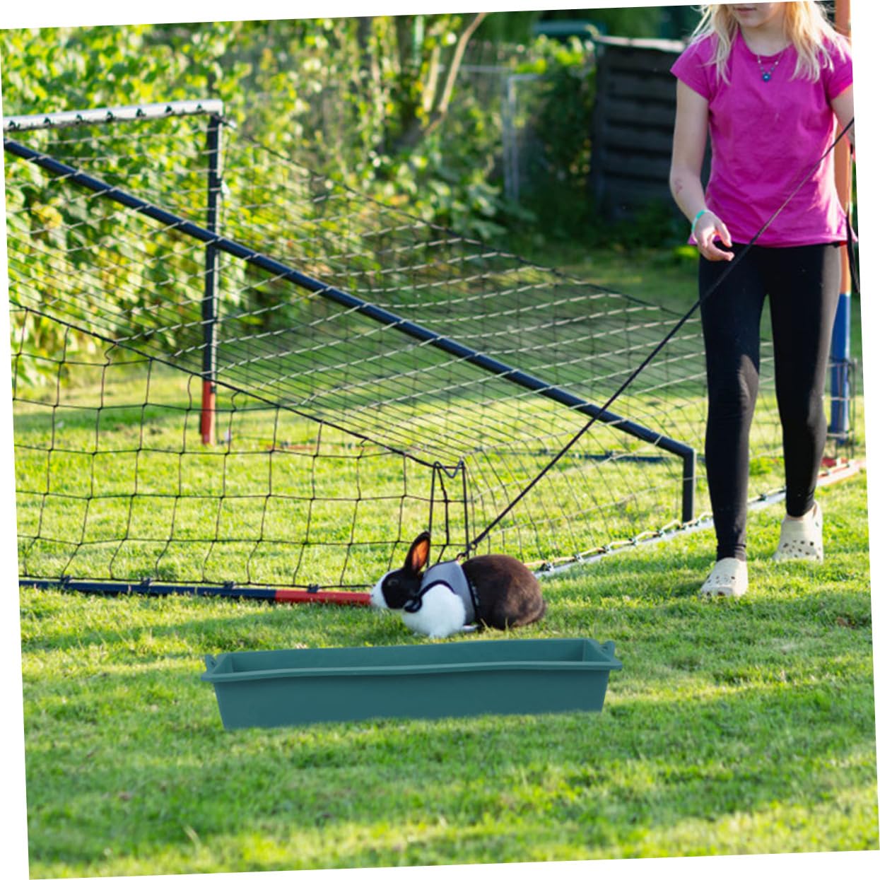 Hey Landwirt! Dieser ovale Futtertrog ist ein echter Allrounder für deine Tiere. Aus verdicktem Kunststoff, super robust gegen Kauen und Wetter. Maße: 59x22x9,5cm - perfekt für Schweine, Ziegen, Schafe, Hühner und Enten. Die ovale Form sorgt für gleichmäßige Futterverteilung ohne Gedränge. Kombiniert Füttern und Tränken in einem - spart Zeit und Platz. Leicht zu reinigen und absolut wetterfest. Olivgrün fügt sich perfekt in die Umgebung ein. Ein praktischer Helfer für jeden Bauernhof - deine Tiere werden's lieben!