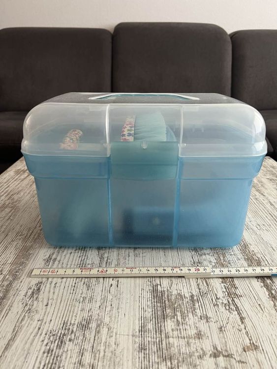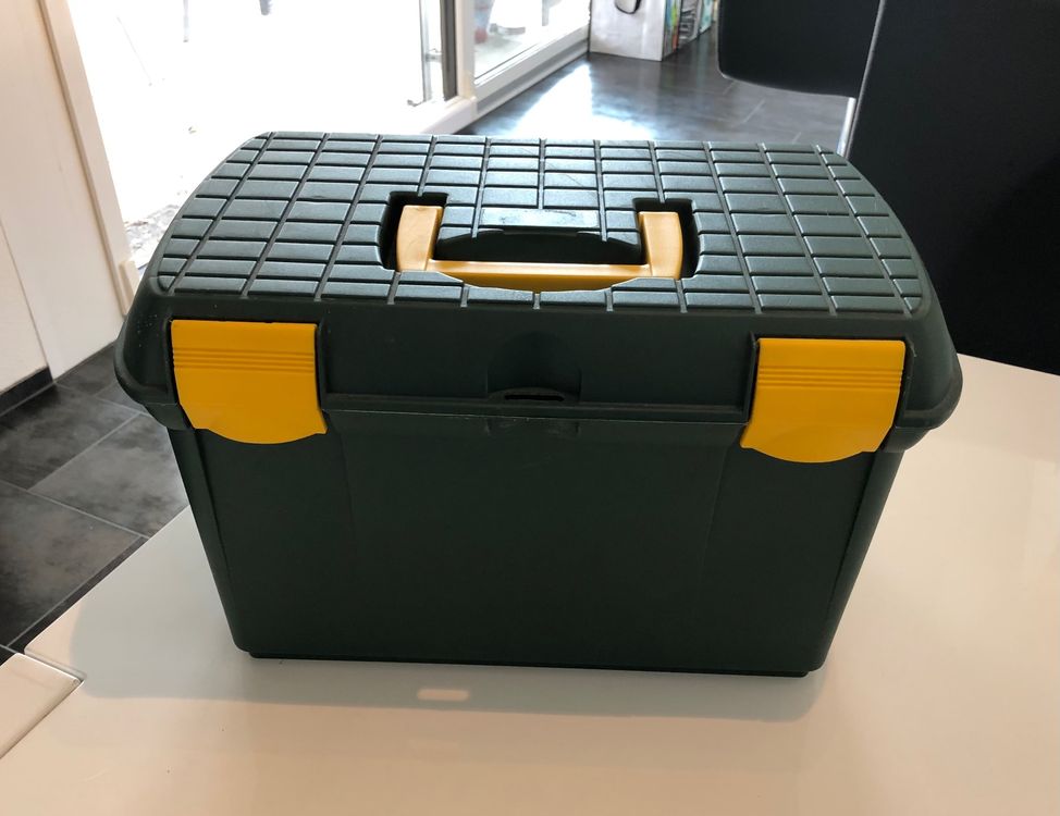 Diese CATAGO Pferde Putzbox ist einfach super praktisch für jeden Pferdebesitzer! In schwarzer Farbe und richtig robust - du kannst dich sogar draufstellen oder draufsitzen, so stabil ist der Deckel. Maße: 40x27,5x24,5cm, also schön geräumig für all dein Putzzeug. Besonders cool: Das herausnehmbare Fach für Kleinteile - da verschwinden Bürsten, Hufkratzer und Co. nicht mehr in der großen Box. Und der extra Pinselhalter sorgt für blitzschnelle Ordnung. Einfach alles reinpacken, schließen und mitnehmen - ob zum Stall, Turnier oder Ausritt. Hält ewig und sieht dabei auch noch gut aus. Perfekt organisiert und immer griffbereit, wenn du dein Pferd pflegen willst. Einfach ein Must-Have für jeden, der Wert auf ordentliches Pferdezubehör legt!