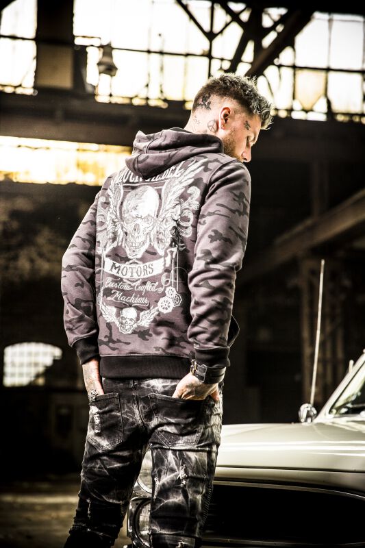 Rock Rebel Kapuzenpullover Herren Grau Mit Patches - Lässiger Hoodie Mit Unikat-Design