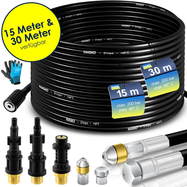 Mann, verstopfte Rohre können echt nerven! Mit diesem AIM Tools 30m Rohrreinigungsschlauch machst du da schnell reinen Tisch. Der Schlauch hält satte 5800 PSI Arbeitsdruck aus - da geht so schnell nichts kaputt! Aus abriebfestem PVC+PE Material, knickfrei und absolut dicht. Drei verschiedene Düsen sind dabei: Die Eck-Düse für schwer erreichbare Stellen, die Knopfnase-Düse für gerade Rohre und die rotierende Düse für intensive Reinigung. Jede hat ihre Spezialfunktion - ob Ecken, Gerade oder feste Verstopfungen. Mit 1/4 Zoll NPT und M22 14mm Anschluss passt das an die meisten Hochdruckreiniger. Im Lieferumfang ist alles dabei was du brauchst: Schlauch, alle drei Düsen, Adapter, Schnellkupplung, Schraubenschlüssel und Dichtungsband. Maximal 176°F Temperatur hält das Material aus - also alles im grünen Bereich. Ob Abfluss, Kanal oder Rohrleitung - mit diesem Set wirst du jede Verstopfung los. Einfach anschließen und loslegen - deine Rohre sind dir dankbar!