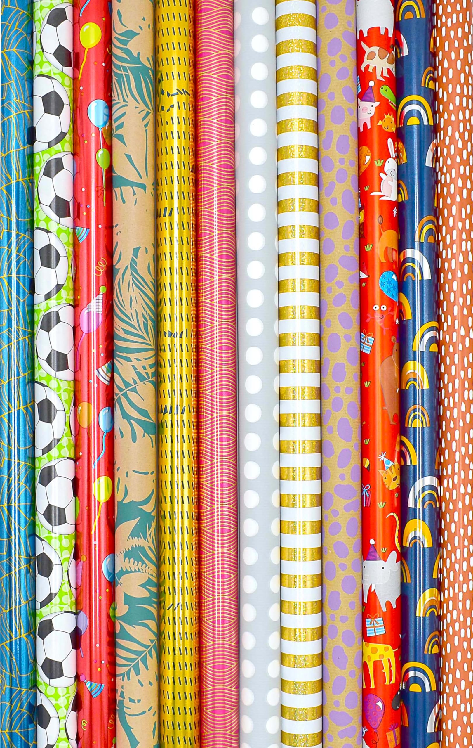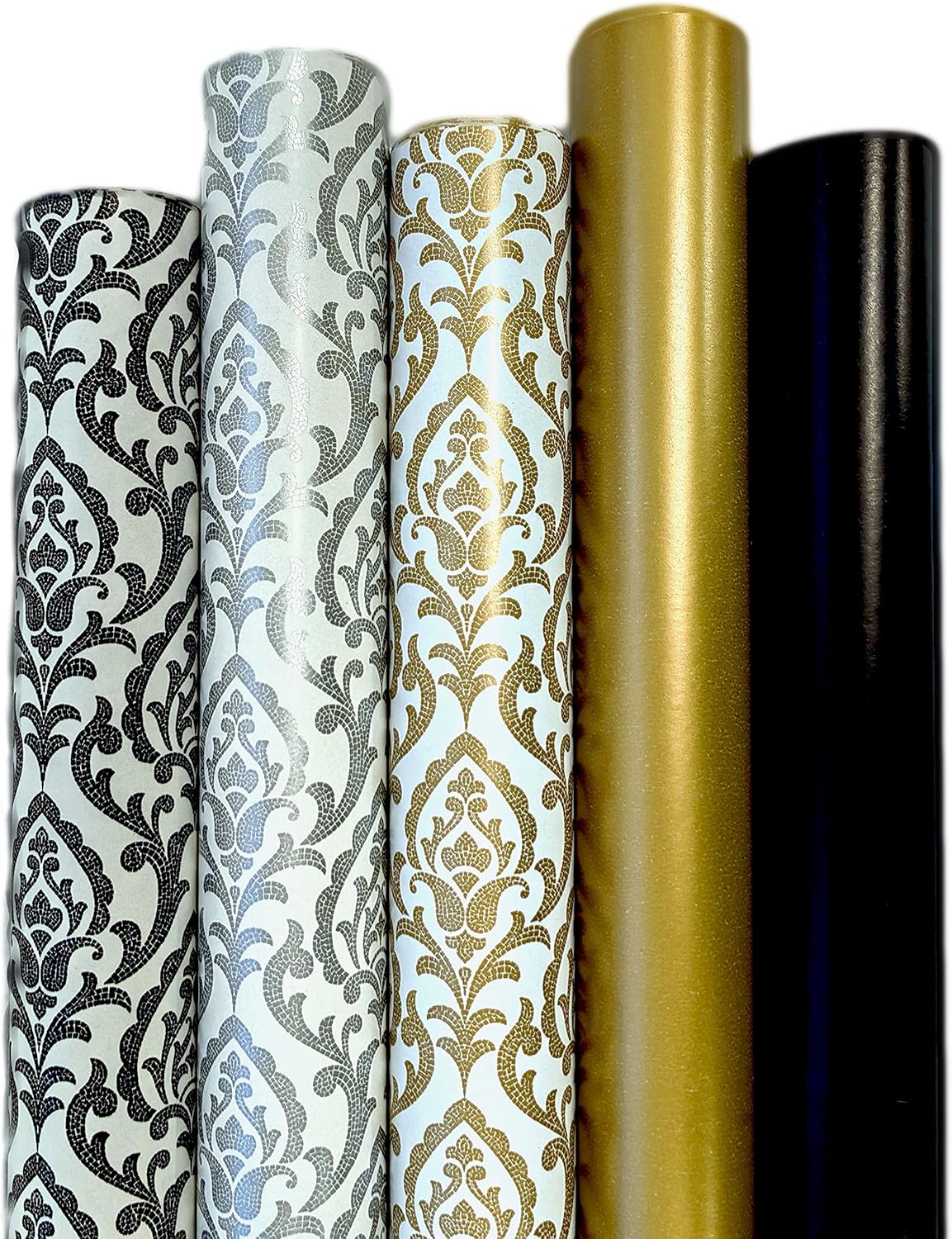 Mach deine Geschenke unvergesslich! Dieses edle Geschenkpapier-Set mit 5 verschiedenen Mustern lässt jedes Präsent strahlen. Die Rollen sind jeweils 3 Meter lang und 43 cm breit - genug für viele Überraschungen! Das besondere: Luxuriöse Schwarz-Gold- und Silber-Designs verleihen deinen Geschenken das gewisse Etwas. Das hochwertige 80g-Papier reißt nicht so schnell und die Heißprägung glänzt wunderschön. Im Set enthalten: 2 Geschenkbänder und 2 Klebebänder - alles was du brauchst! Ob für Geburtstage, Hochzeiten, Valentinstag oder Weihnachten - hier findest du für jeden Anlass das passende Design. Einfach zuschneiden, verpacken und verzaubern! Deine Liebsten werden begeistert sein von der liebevollen Verpackung. Tipp: Auch super für Bastelprojekte geeignet!