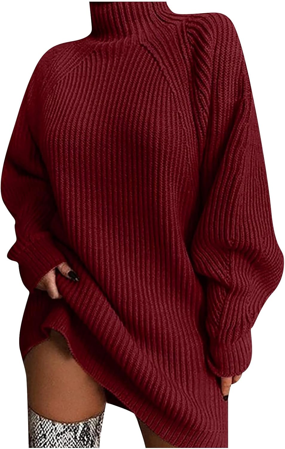 Frolicddlook Strickkleid Damen Rollkragen Langarm - Elegantes Pulloverkleid Winter