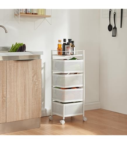 Mehr Stauraum war noch so einfach! Dieser Luchs Küchenwagen aus Metall mit 4 Fächern ist der absolute Alleskönner. Mit 360°-Rollen fährst du ihn einfach dorthin wo du ihn brauchst. Die Körbe lassen sich zur Seite schieben - super praktisch zum Beladen. Ob in der Küche für Gewürze, im Bad für Hygieneartikel oder im Büro für Utensilien - dieser Wagen organisiert alles. Weiß lackiert gegen Rost, für innen und außen geeignet. Endlich Ordnung und alles griffbereit!