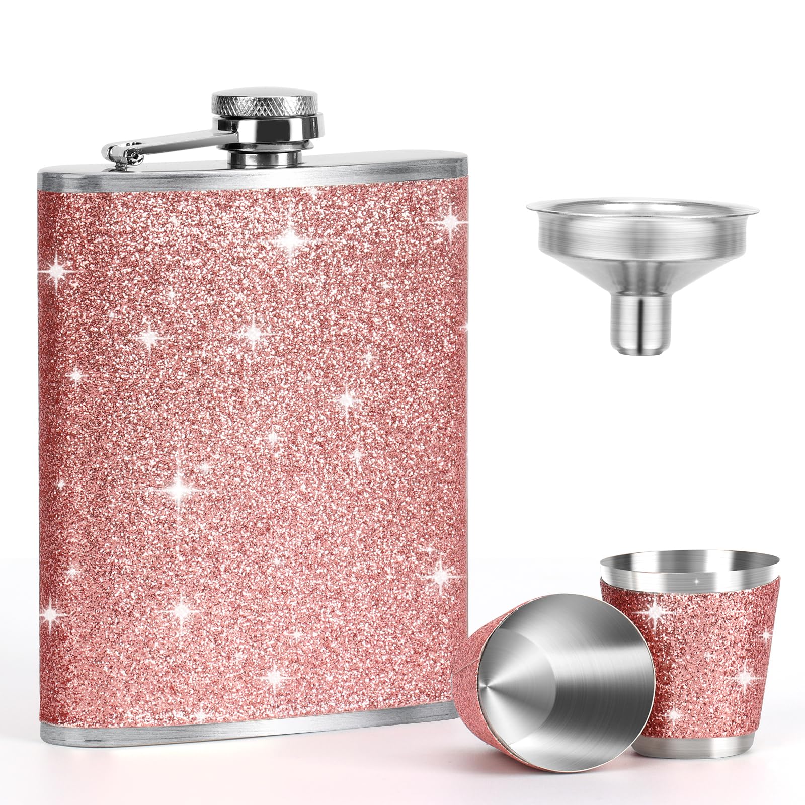 Alter, dieser Flachmann ist richtig stylisch! In knalligem Rosa mit Glitzer-Effekt - total weiblich und auffällig. Aus lebensmittelechtem Edelstahl 304, also gesund und rostfrei. Mit 240ml Fassungsvermögen perfekt für unterwegs. Der inklusive Trichter macht das Befüllen super einfach - nichts läuft daneben. Und der Schraubverschluss ist absolut auslaufsicher! Passt in jede Handtasche oder Jackentasche. Ideal für Festivals, Partys, Wanderungen oder Camping. Auch mit persönlicher Gravur möglich - ein echt persönliches Geschenk. Sieht teuer aus, ist aber erschwinglich. Macht jeden Ausflug noch spaßiger! Ob Whisky, Schnaps oder Lieblingsgetränk - immer dabei in Style.