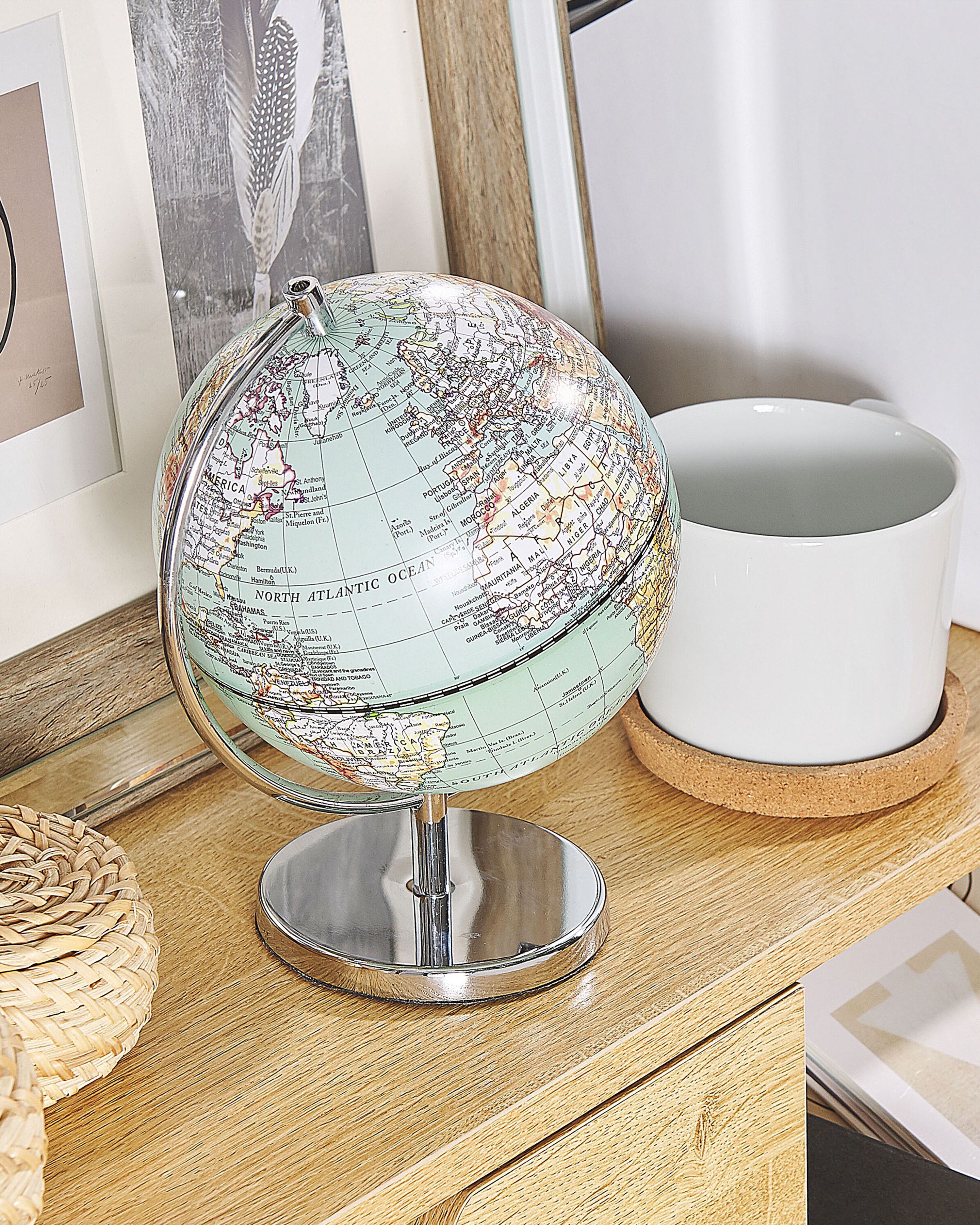 Wow, dieser Tischglobus ist einfach stylisch! In zartem Rosa mit edlem Roségold-Fuß macht er sich super in jedem Büro oder Wohnzimmer. Die Karte ist schön matt, damit du alles gut lesen kannst, und der rote Äquator gibt dem Ganzen einen besonderen Look. Einfach drehen und schon reist du um die Welt! Mit 28cm Höhe ist er genau die richtige Größe für den Schreibtisch. Aus robustem Kunststoff und Metall, super pflegeleicht und der Fuß schützt deine Möbel vor Kratzern. Perfekt als Deko, Geschenk oder für kleine Entdecker. Einfach hinstellen und staunen - so macht Geografie Spaß!