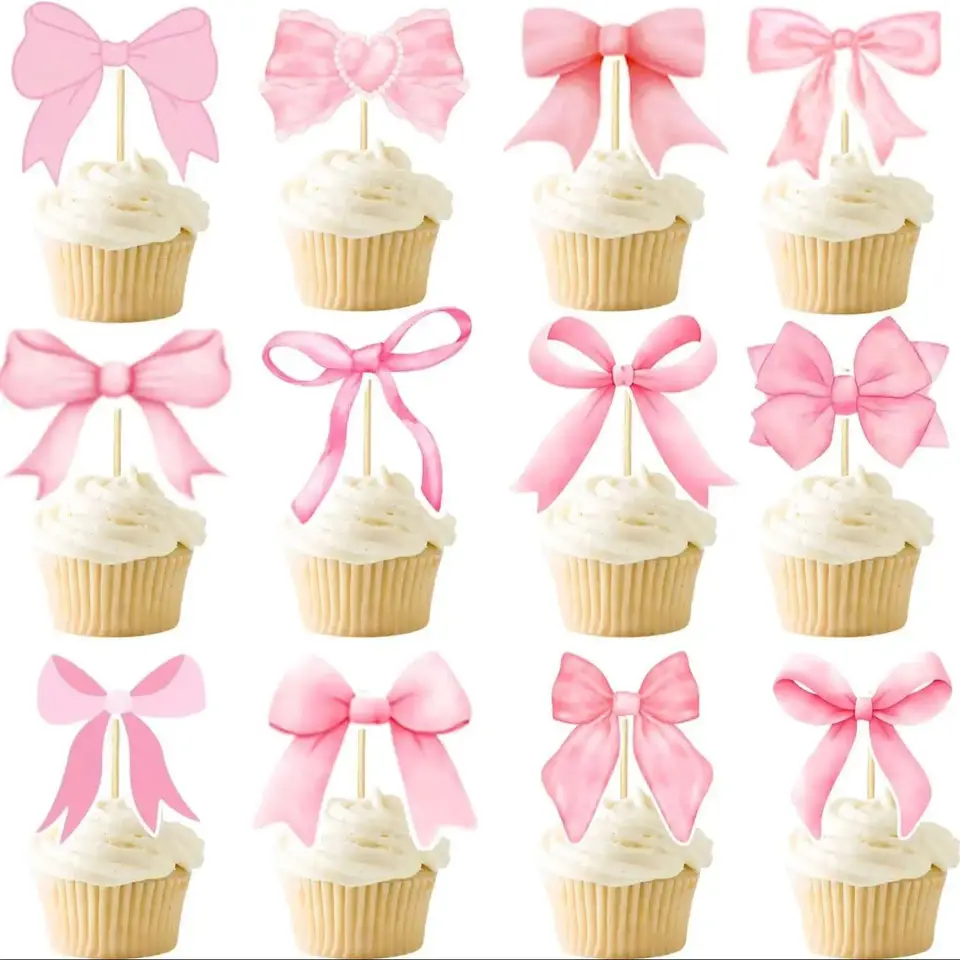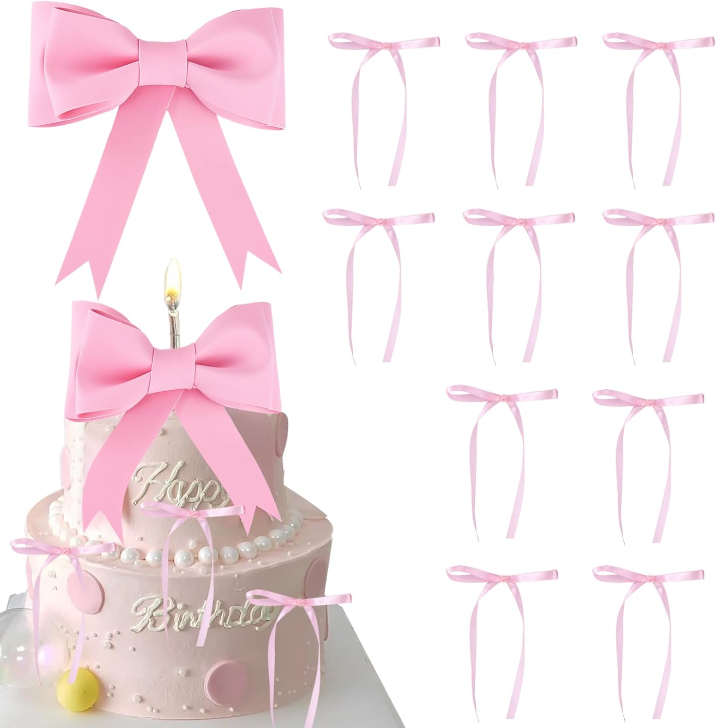 Rosa Schleifen Cake Topper Set - Geburtstagskuchen Deko Mit 12 Bögen