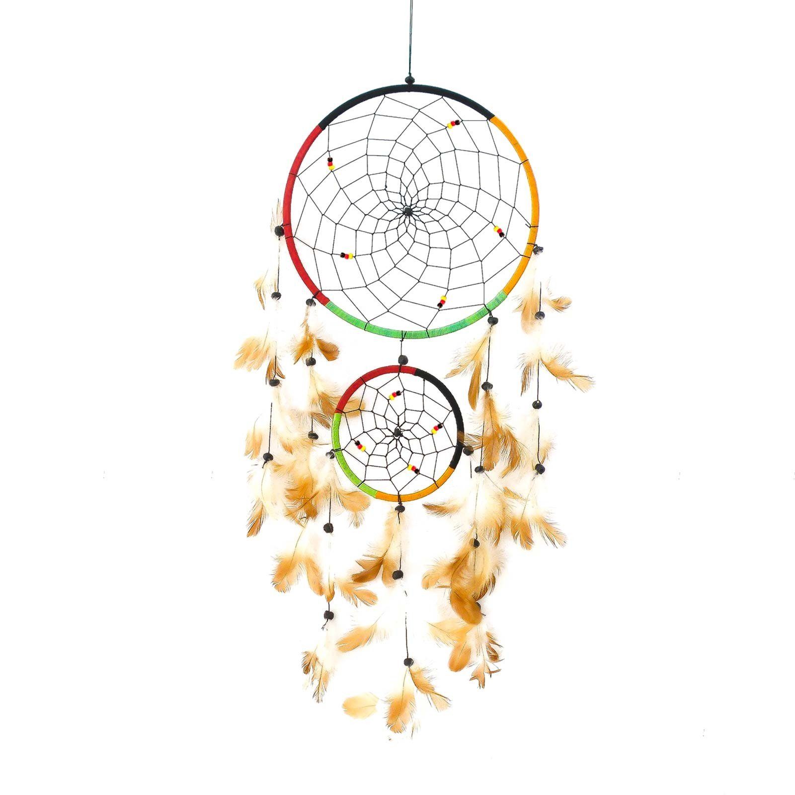 Kascha Traumfänger 60cm Rot Silber - Handgefertigter Dreamcatcher Mit Glitzer & 5 Ringen
