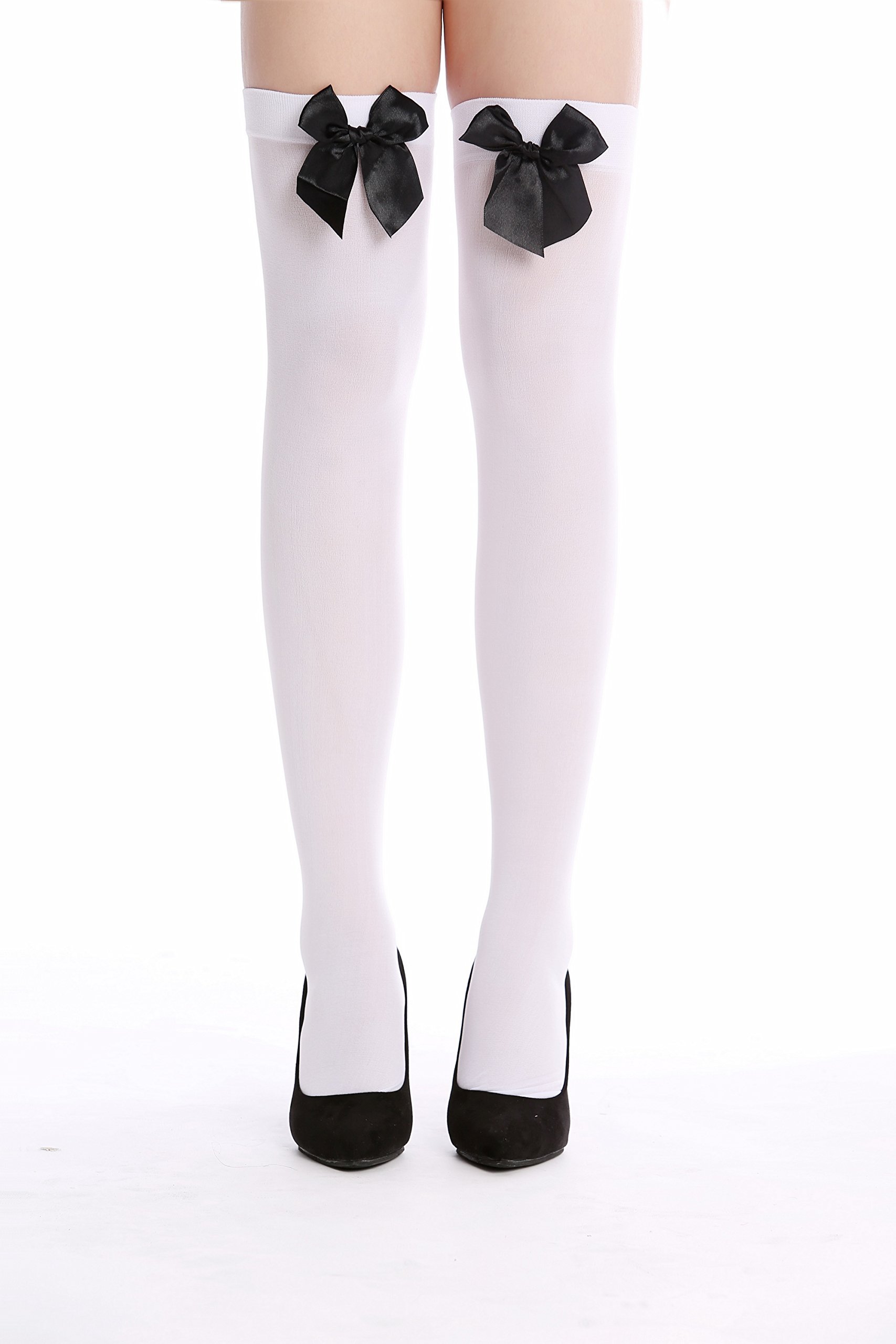 Weiße Overknee Strümpfe Mit Roter Schleife - Schneewittchen Look Für Mottopartys