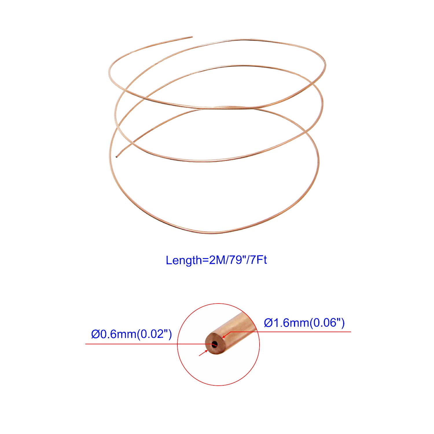Rotes Kupfer-Kapillarrohr 2m - 0,6mm Innen, 1,6mm Außen Für Kühlsysteme