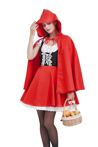 Rotkäppchen Cosplay Kostüm Damen - Halloween Performance Kleid Mit Kapuze