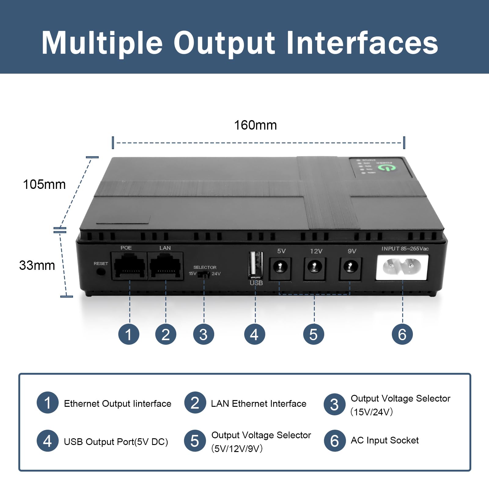 Nie wieder Internetausfall bei Stromstörung! Diese kleine USV-Box hält deinen Router, deine Kameras oder Modems am Laufen. Mit 10400 mAh Akku, mehreren Anschlüssen (USB, 5V/9V/12V DC) und nur 18 Wh Leistung. Super einfach anzuschließen, und die LED-Anzeige zeigt dir, wie viel Saft noch drin ist. Auch ideal als Notladegerät fürs Handy. Schutz vor Kurzschluss, Überladung & Co. inklusive. Kompakt, leicht - perfekt für Zuhause oders kleine Büro. Endlich keine Angst mehr vor Blackouts!