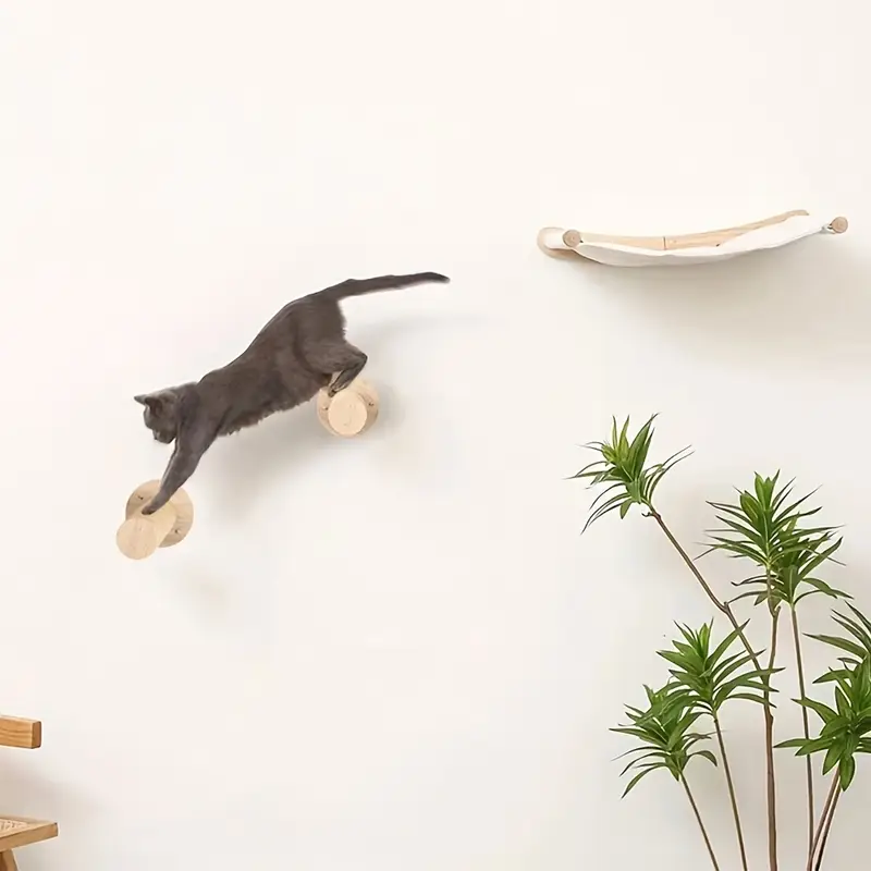 Deine Katze klettert überall rum? Diese RshPets Kletterwand gibt ihr ihren eigenen Kletterpark! Das Set besteht aus nem gemütlichen Katzenbett (54x36cm) und zwei Stufen (26,5x12cm) - alles aus robustem 15mm Sperrholz. Mit Teppich bezogen, damit deine Katze nicht rutscht. Super platzsparend, weil es an der Wand montiert wird - perfekt für kleine Wohnungen! Das Bett hat ne weiche Polsterauflage, da kann sich dein Stubentiger so richtig gemütlich machen. Einfach zu montieren mit der beiliegenden Anleitung. Sieht dazu noch richtig stylisch aus in dunkler oder heller Farbe. Deine Katze wird's lieben - und deine Möbel werden endlich in Ruhe gelassen! Einfach aufhängen und zuschauen, wie deine Katze ihren neuen Lieblingsplatz erobert.