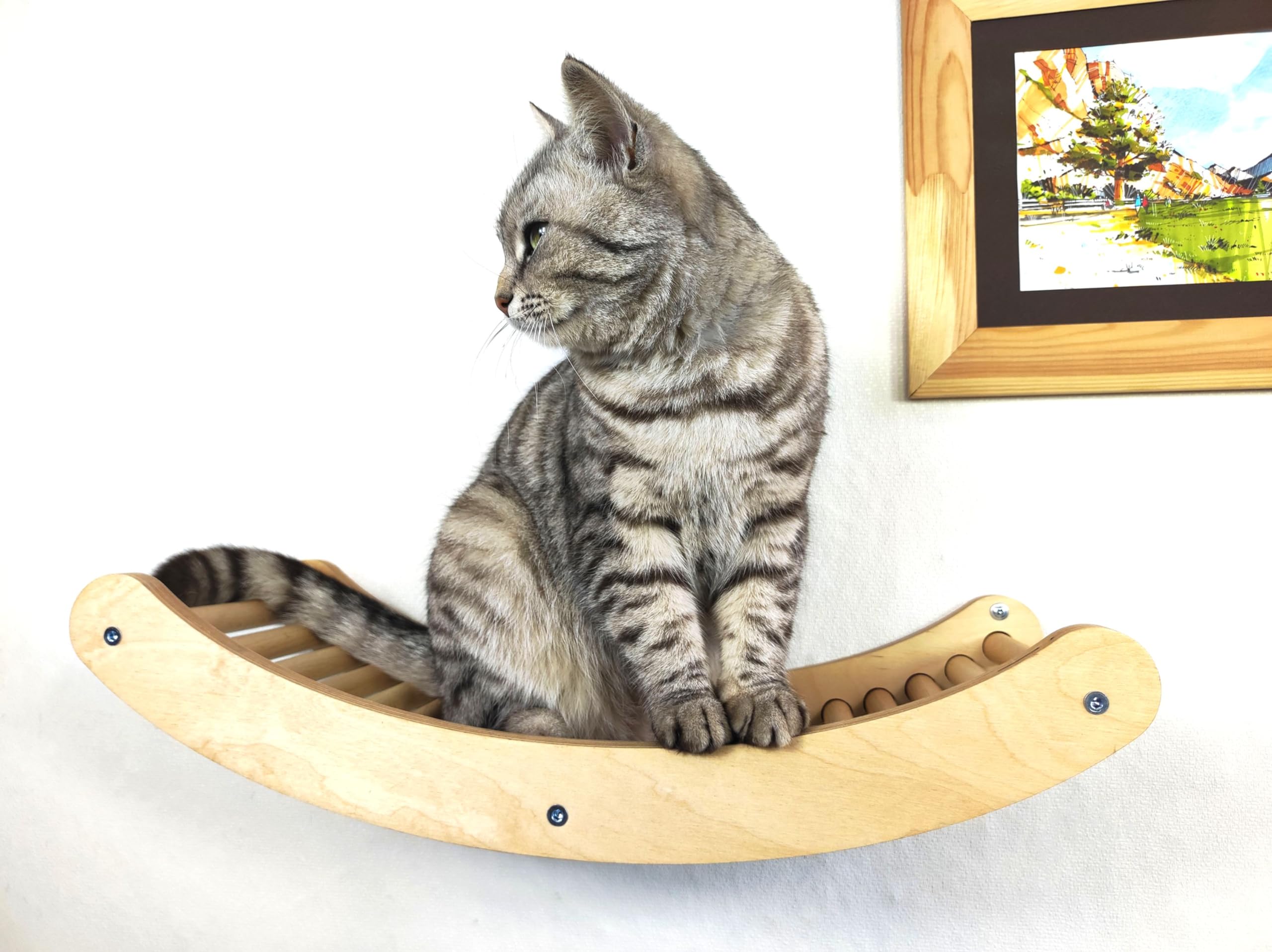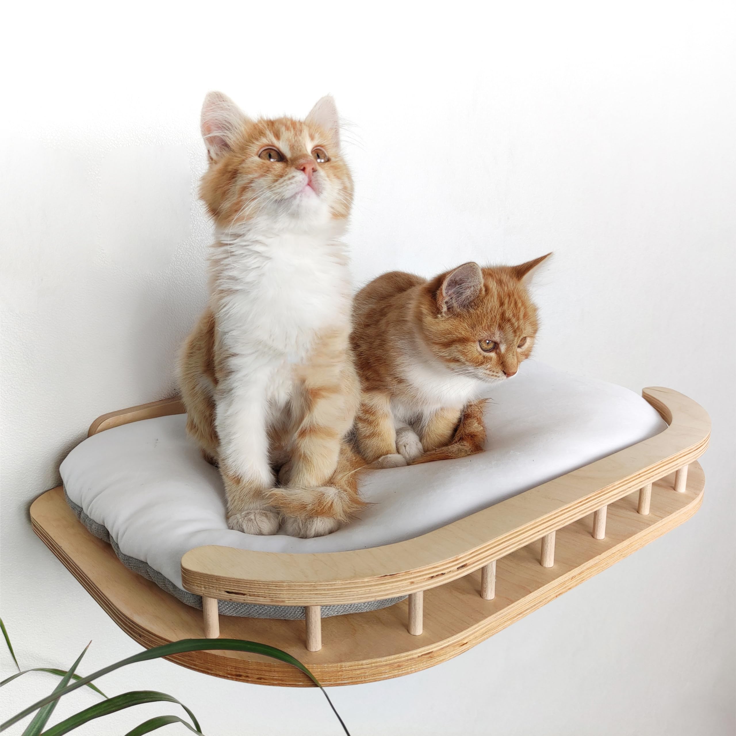 RshPets Katzen Kletterwand - Wandmontiertes Katzenmöbel Mit Bett & 2 Stufen