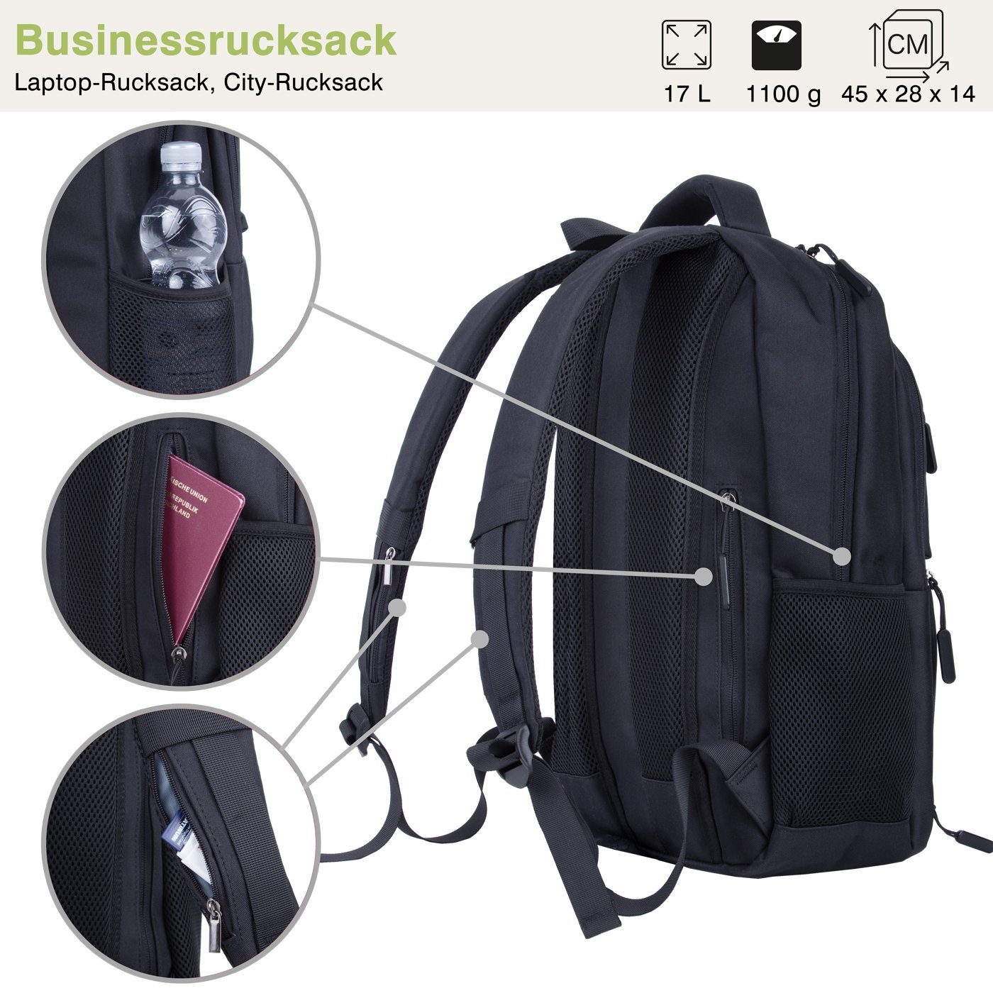 Richtig schicker Rucksack für die moderne Frau! Dieser hellblaue City-Rucksack von irisaa überzeugt mit seinem minimalistischen Design und der dekorativen Metallschnalle. Das Roll-Top mit Schnallenverschluss sieht nicht nur gut aus, sondern ist auch super praktisch. Aus hochwertigem Kunstleder gefertigt, das deine Sachen zuverlässig vor leichtem Regen schützt. Innen findest du reichlich Platz im großen Hauptfach für Laptop, Bücher oder deine Arbeitsunterlagen. Die seitlichen Außentaschen sind perfekt für Wasserflaschen oder Regenschirm, und das zusätzliche Reißverschlussfach bietet sicheren Stauraum für Wertsachen. Mit praktischem Tragegriff und verstellbaren Schultergurten ist er extrem vielseitig - ob für die Arbeit, die Uni, als Schulrucksack oder für Tagesausflüge. Die saubere Verarbeitung und stabilen Reißverschlüsse garantieren lange Freude. Ein Rucksack, der zu jedem Outfit passt und sich sowohl im Business-Umfeld als auch in der Freizeit gut macht. Stilvoll, praktisch und alltagstauglich!
