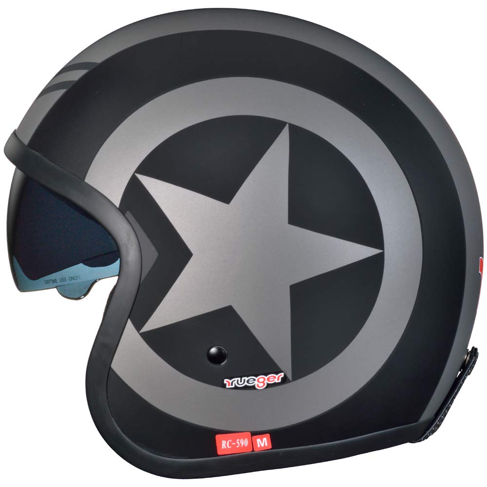 Rueger RC-583 Jethelm Motorradhelm Schwarz Matt - Leichter Chopper Helm Größe XS (53-54)