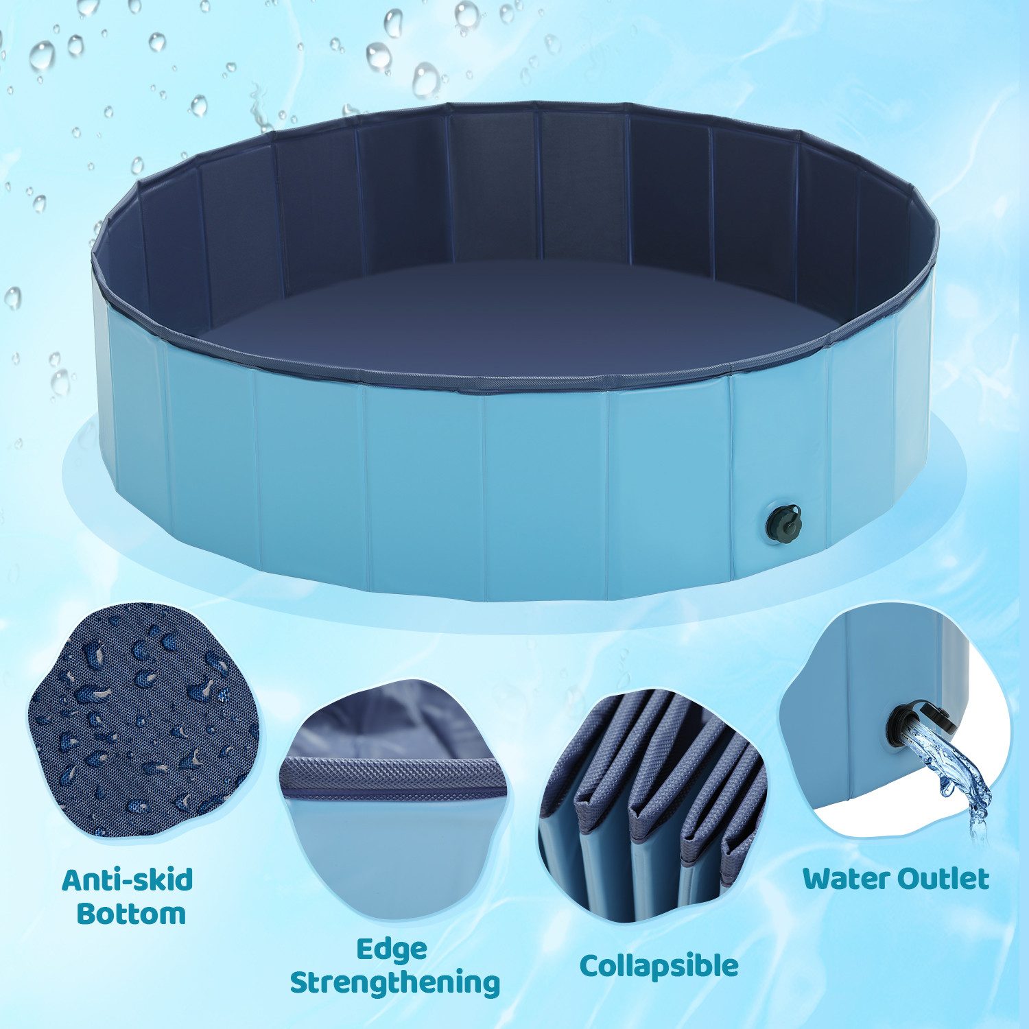 Dein Pool bleibt sauber! Diese runde Poolabdeckung mit 122 cm Durchmesser schützt vor Laub, Schmutz und Insekten. Mit praktischem Kordelzug - einfach über den Pool legen und zuziehen. \\n\\nAus robustem Oxford-Stoff mit UV-Schutz, wasserdicht und windfest. Die schwarze Oberfläche absorbiert Sonnenenergie und hält die Wassertemperatur. \\n\\nReduziert Wasserverdunstung und spart so bares Geld. Weich, maschinenwaschbar und platzsparend faltbar. \\n\\nPasst auf runde Pools bis 122 cm, Hundepools, Kinderpools. Auch geeignet für runde Tische, Trampoline oder Gartenmöbel. \\n\\nDie praktische Lösung für einen sauberen Pool - auch bei starkem Wind bleibt die Abdeckung sicher an Ort und Stelle!