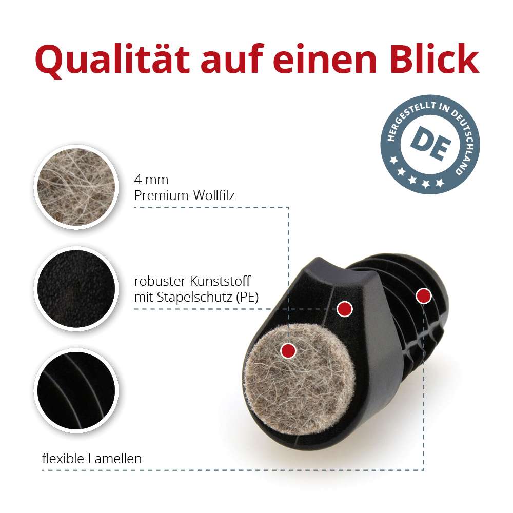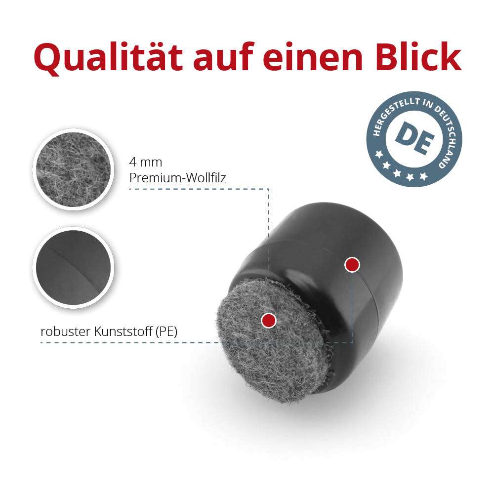 4X Filzgleiter Rund 16mm - Hochwertige Wollfilz Gleiter Für Stuhlbeine, Made In Germany